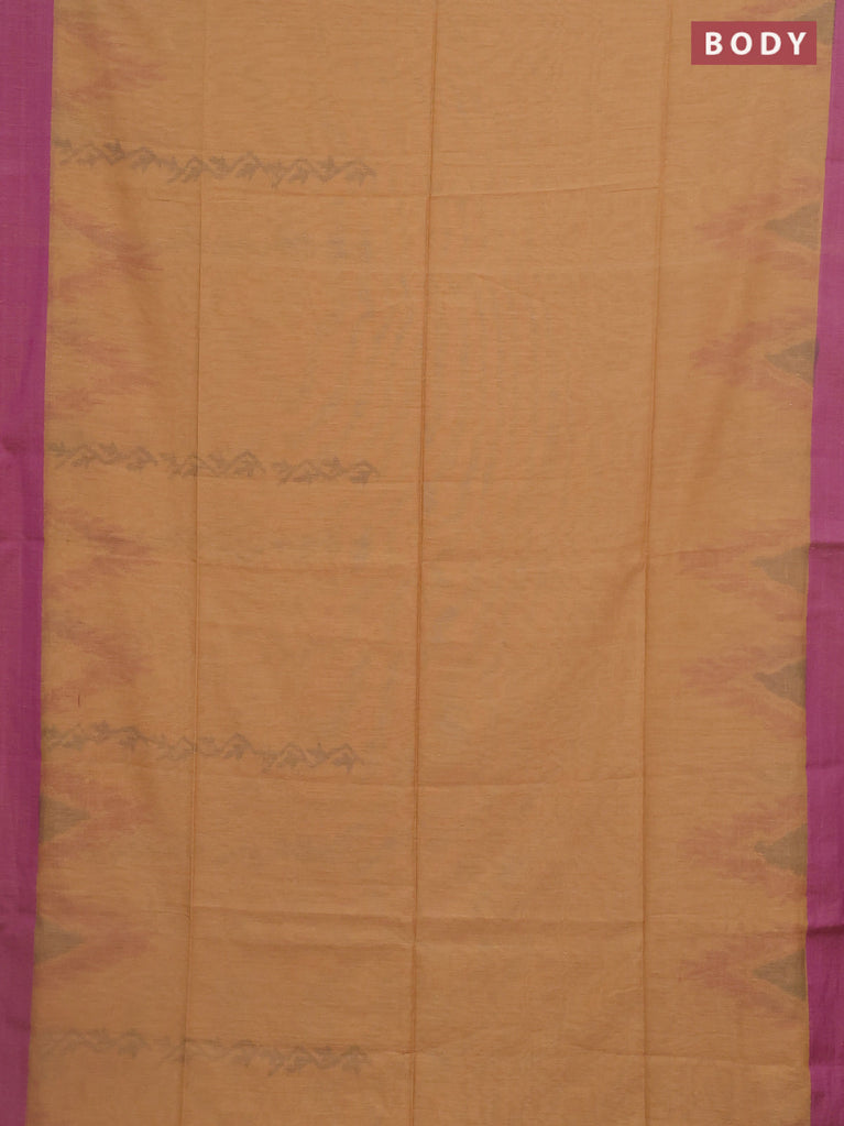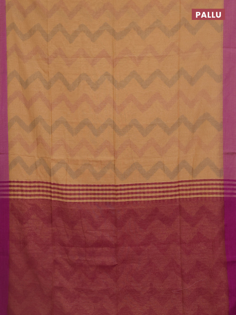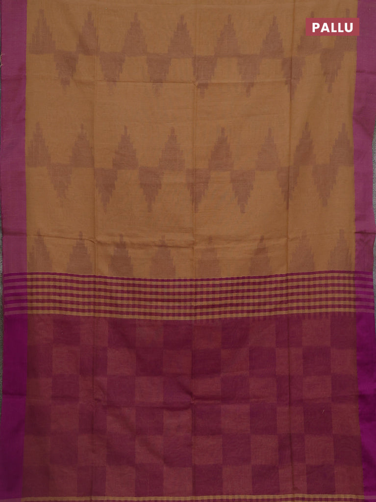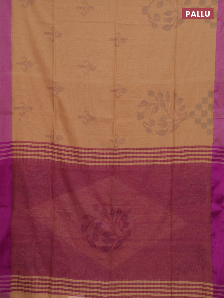 Bengal soft cotton saree sandal and purple with allover weaves and simple border