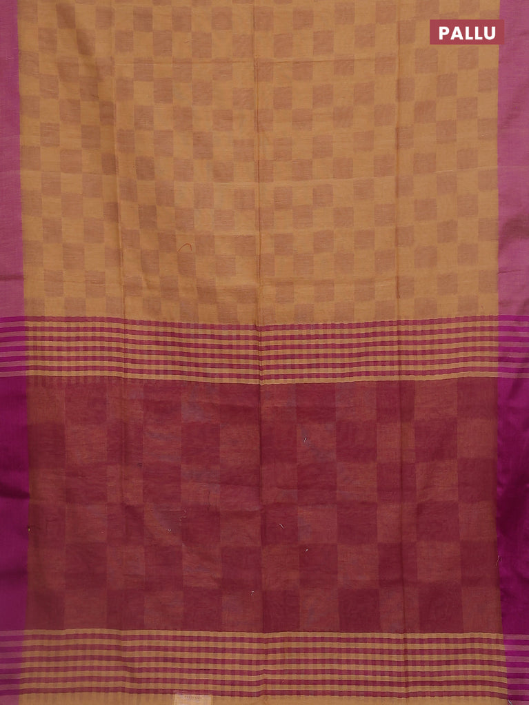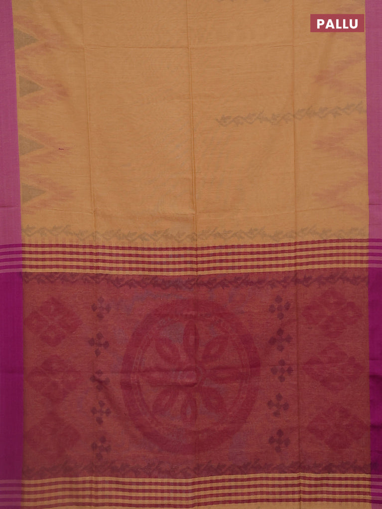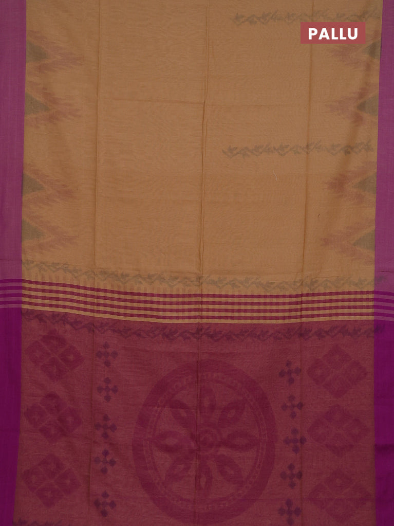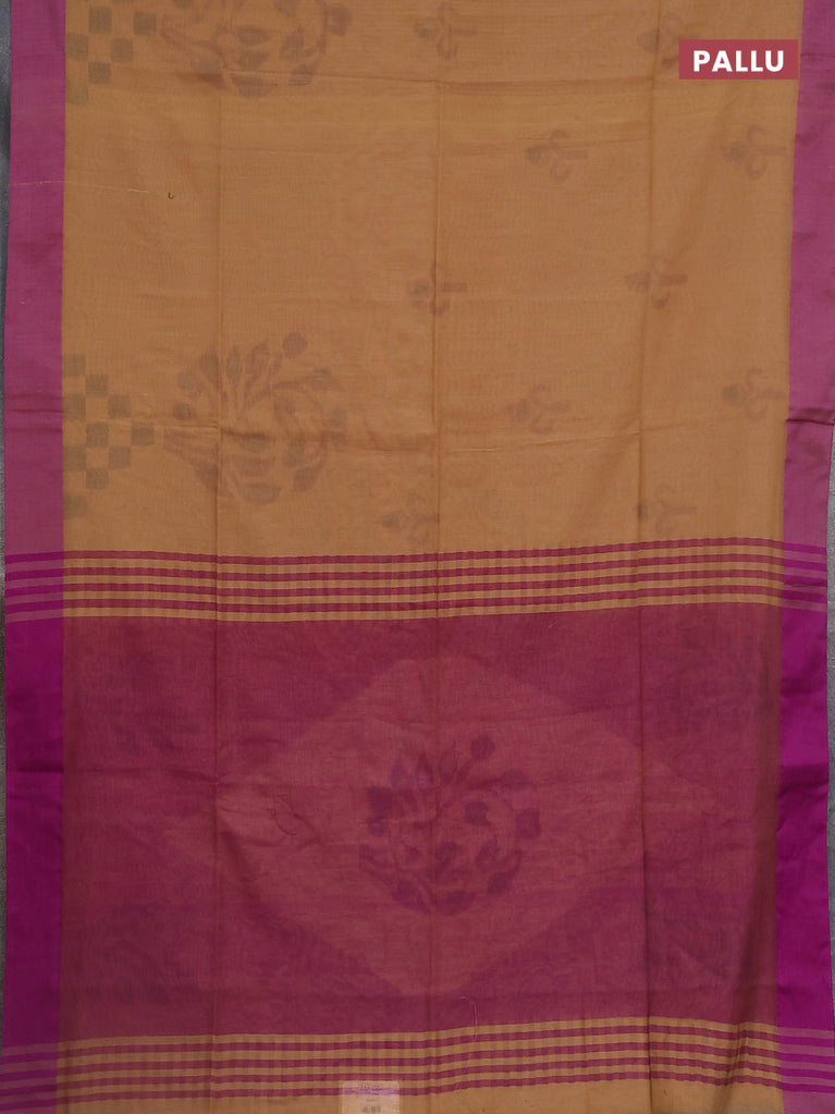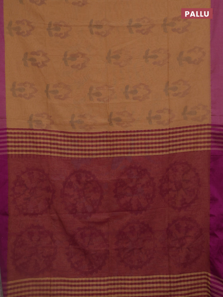Bengal soft cotton saree sandal and purple with allover weaves and simple border