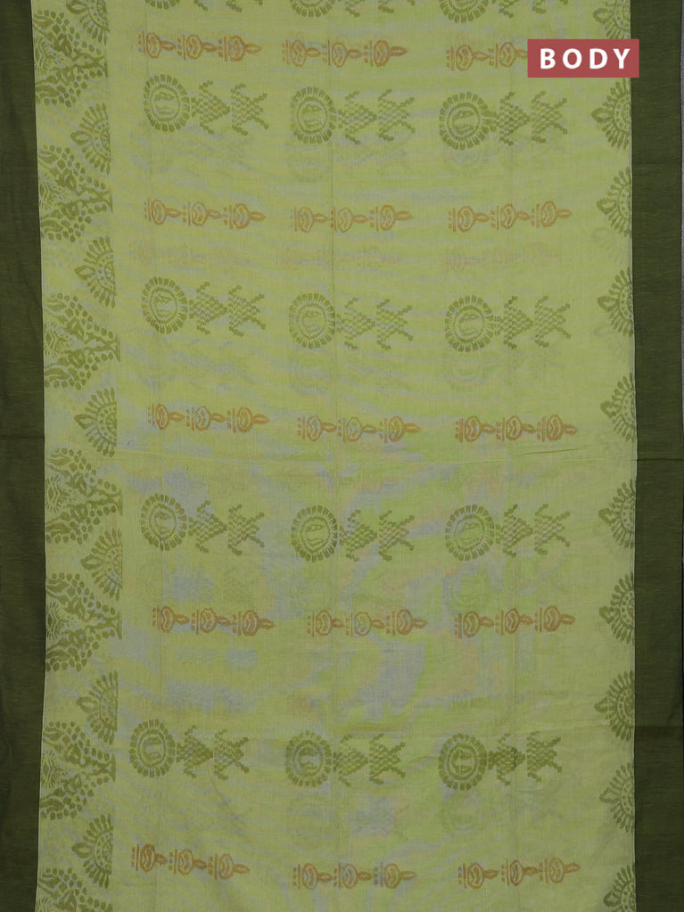 Bengal soft cotton saree pista green and navy blue with allover butta weaves and simple border