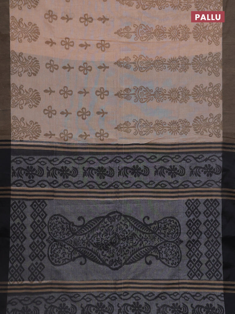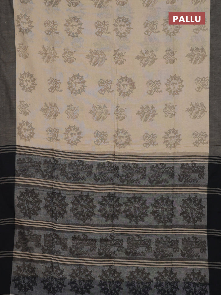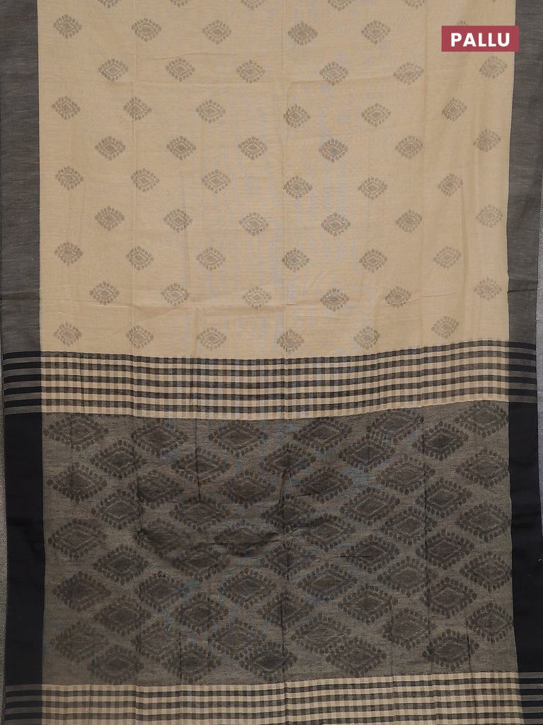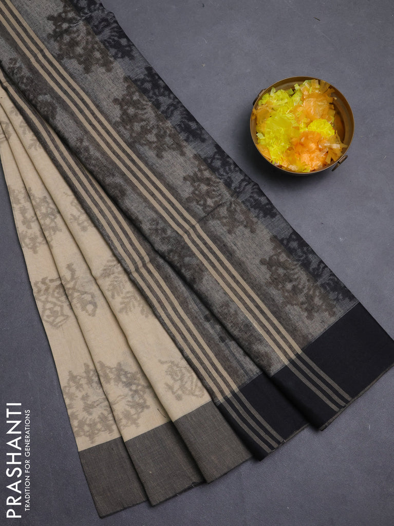 Bengal soft cotton saree sandal and black with butta weaves and simple border
