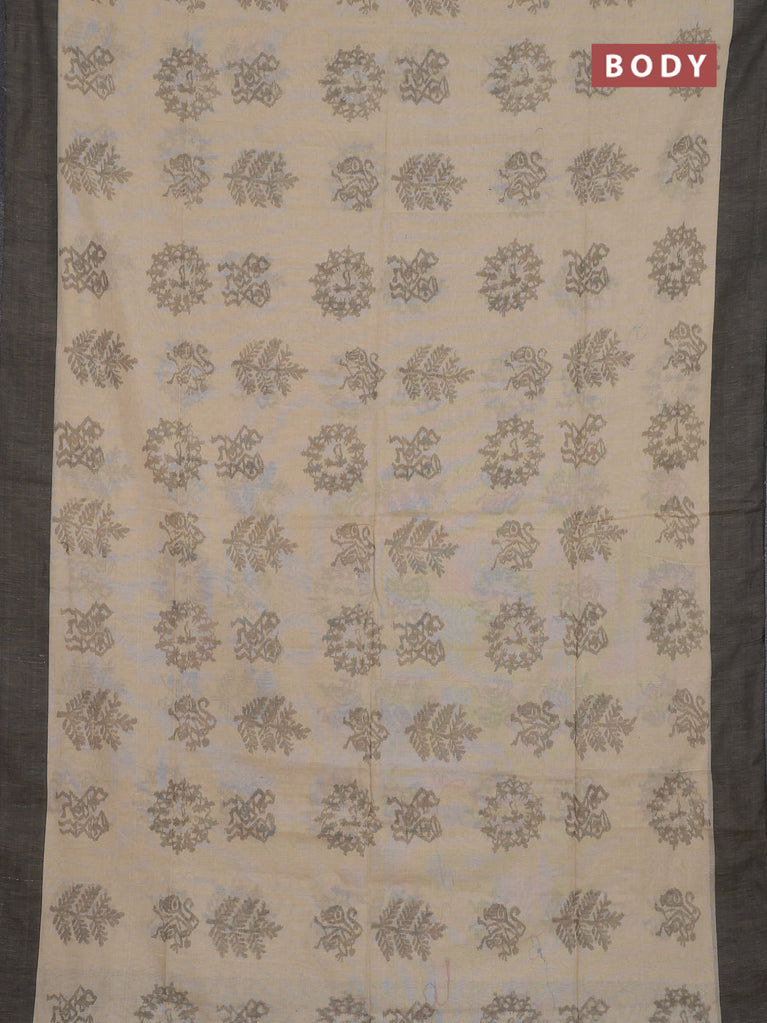 Bengal soft cotton saree sandal and grey with butta weaves and simple border