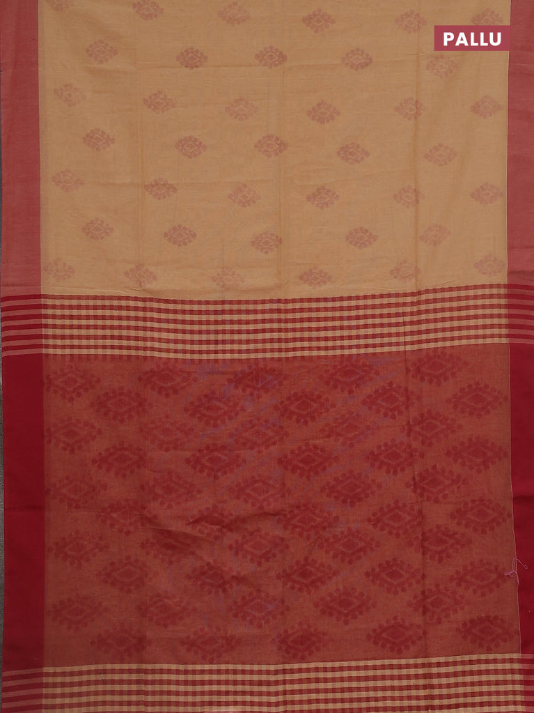 Bengal soft cotton saree sandal and maroon with butta weaves and simple border
