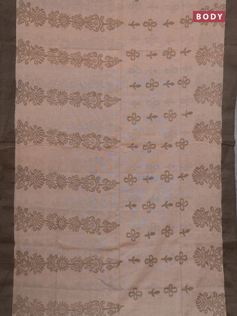 Bengal soft cotton saree sandal and grey with allover weaves and simple border