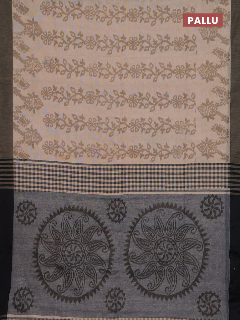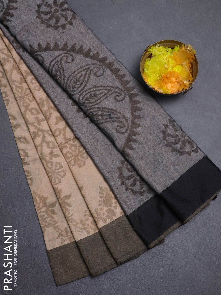 Bengal soft cotton saree sandal and black with allover weaves and simple border