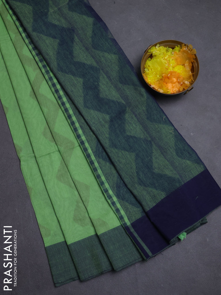 Bengal soft cotton saree pista green and navy blue with allover weaves and simple border