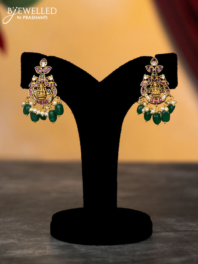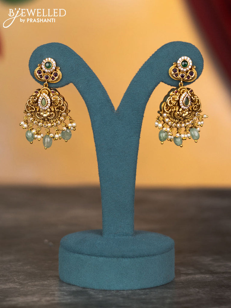 Antique changable 3 pendant necklace lakshmi & manga design with kemp & cz stones and pearl & beads hangings