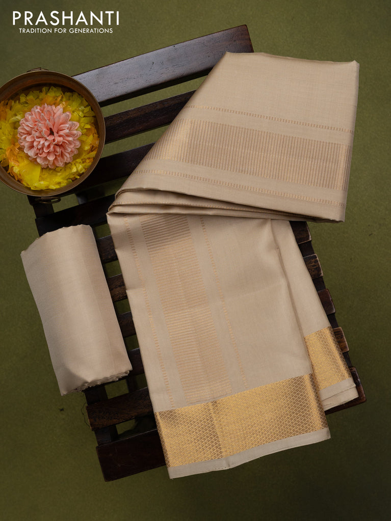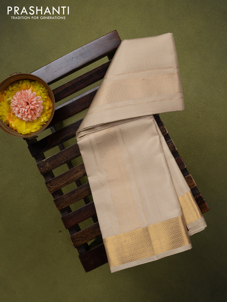9x5 Pure silk dhoti and matching shirt bit cream with zari woven border