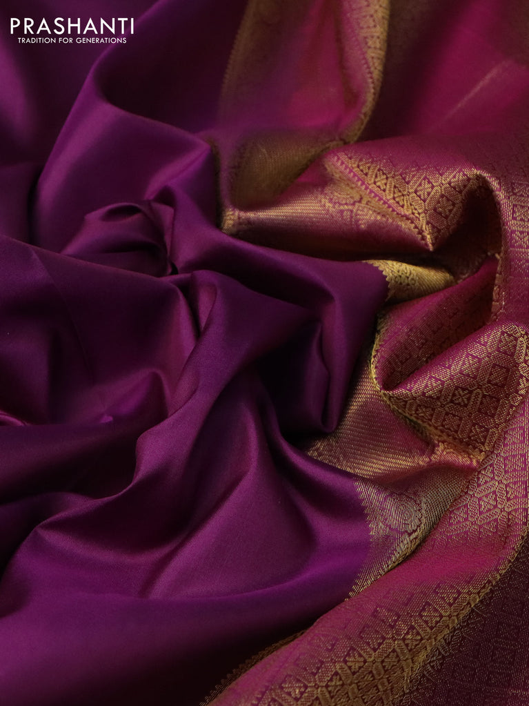 10 Yards silk saree purple and magenta pink with plain body and zari woven border