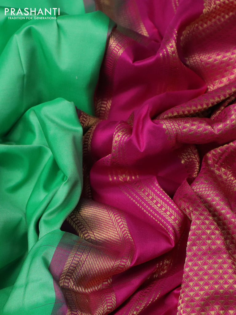 10yards pure silk saree bottle green and pink with plain body and temple design rettapet zari woven border