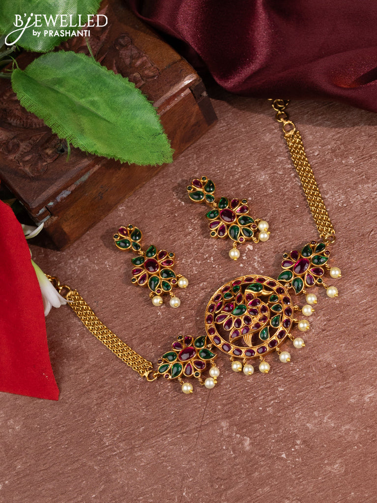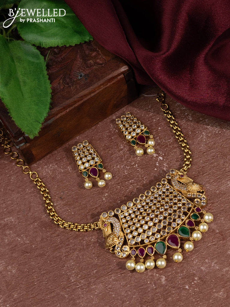Antique choker peacock design with kemp & cz stones and pearl hangings