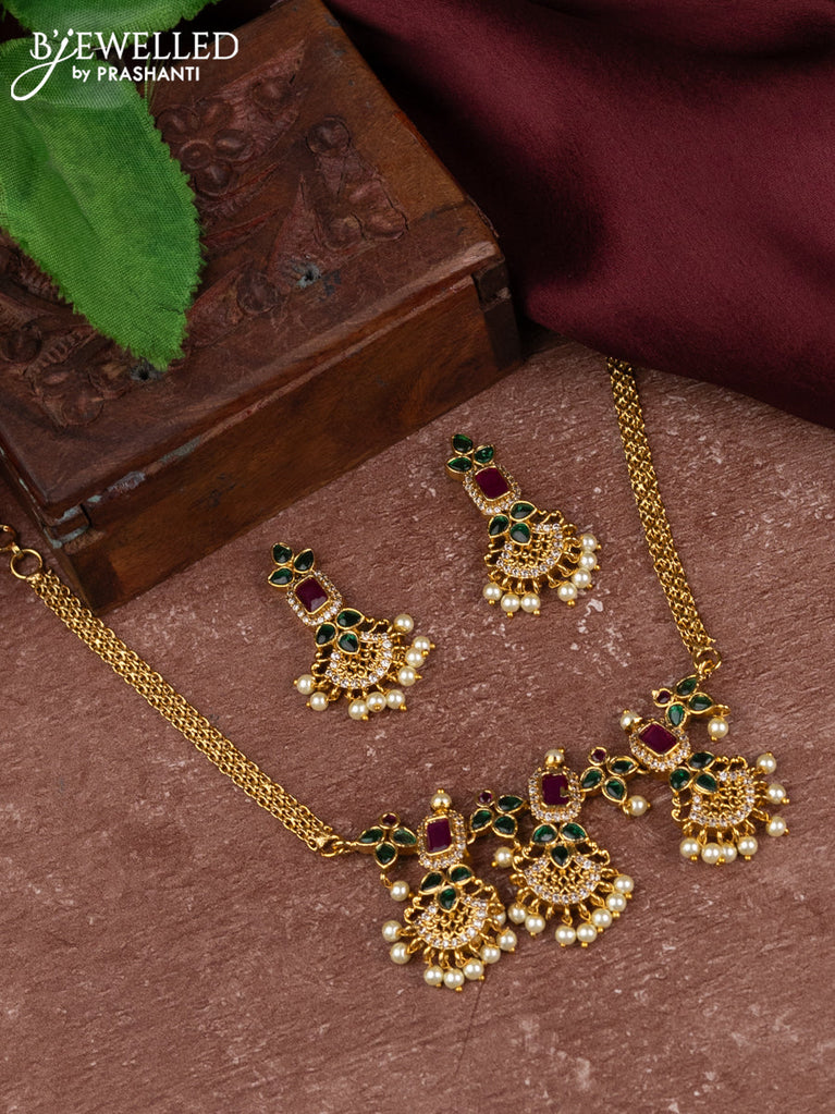 Antique changable pendant haram manga pattern with kemp & cz stones and pearl & green beads hangings