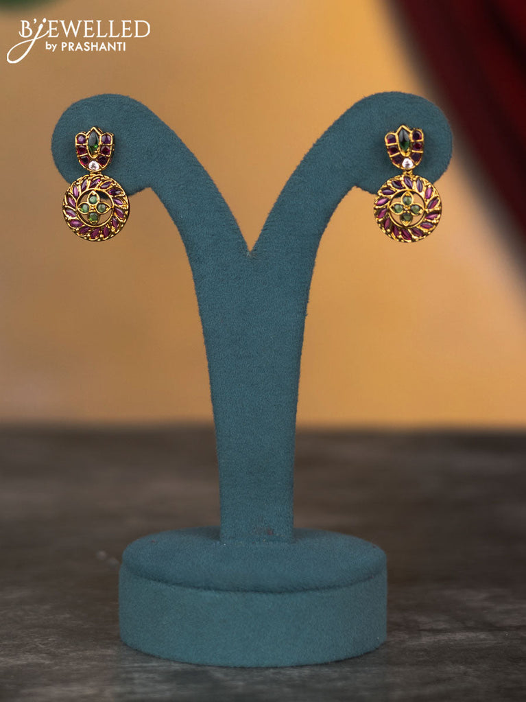 Antique necklace lakshmi design with kemp,cz stone and green pearl beads hanging