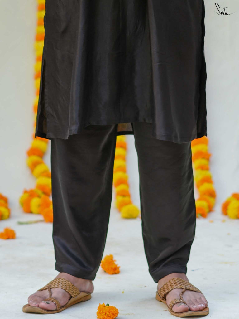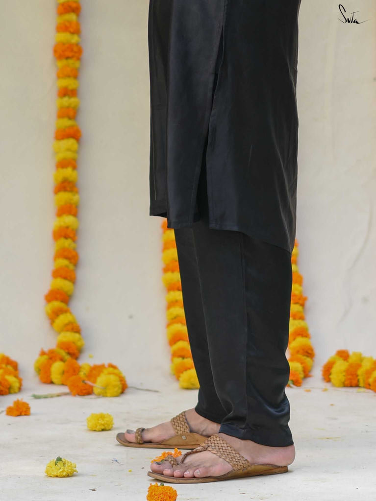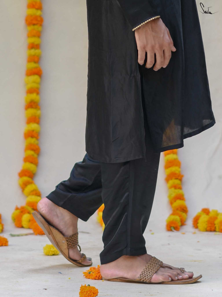 Kuch to khas hai! Discover the vibrant Tyohaar collection from Adam Me by Suta, where each kurta embodies the spirit of festivity and tells a story of joy and togetherness.Introducing the Black Saaya Kurta, a stunning viscose blend piece that exudes sophistication and elegance. With its straight fit and two pleats, this kurta drapes beautifully, making it perfect for festive evenings. The classic black hue serves as a versatile canvas for accessorizing, allowing you to express your unique style while celebrating the warmth of togetherness.This season, let “tyohaar” celebrate the joy of gathering with loved ones.