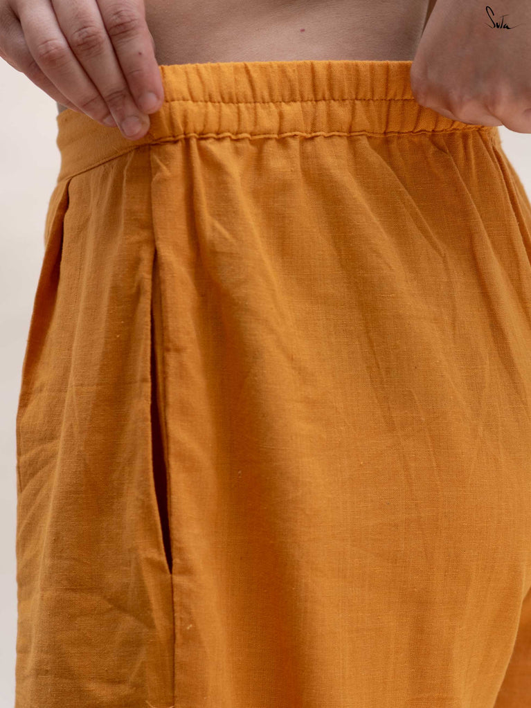 These mustard cotton pants are made for ease - breathable, comfortable, and easy to move in. The elasticated waist keeps the fit relaxed, while the scalloped hem adds a soft handcrafted detail. Finished with pockets on both sides, they’re practical enough for everyday wear.