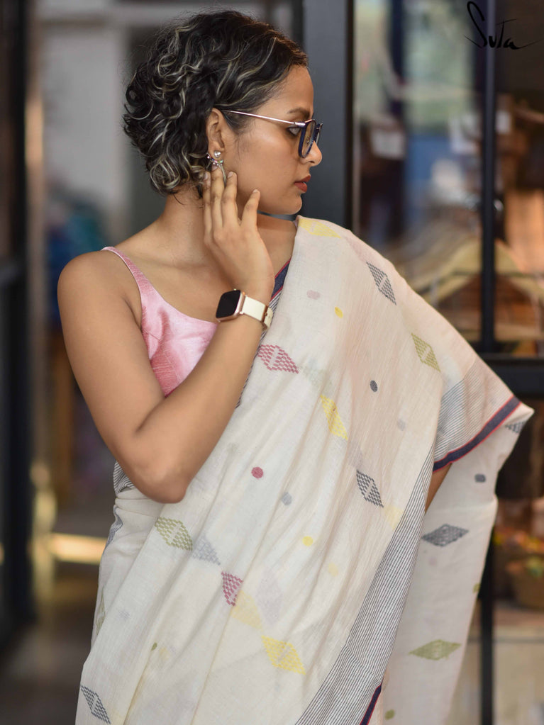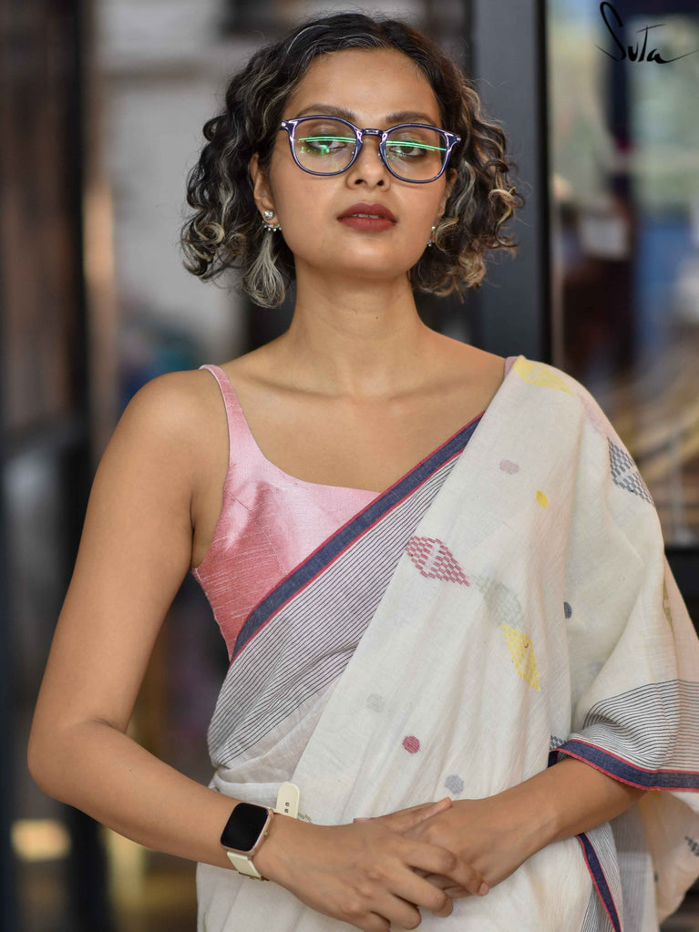 Note: Our mul sarees are slightly transparent, it’s the nature of the fabric and part of its soft, airy charm.