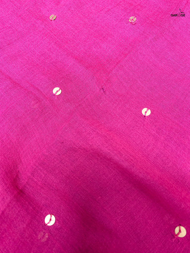 This white mul cotton saree feels like a quiet autumn afternoon soft, dreamy, and full of grace. Scattered across its canvas are delicate, hand-stitched bougainvillea flowers in pink organza, each one blooming like a secret, captured mid-fall. The 3D florals add a romantic, whimsical texture, while lace finishing and tassels bring a gentle flow with every step. It’s not just a saree it’s the rustle of petals, the hush of breeze, and the feeling of autumn… no matter the season. Wear it when you want to feel a little closer to nature. Or yourself.