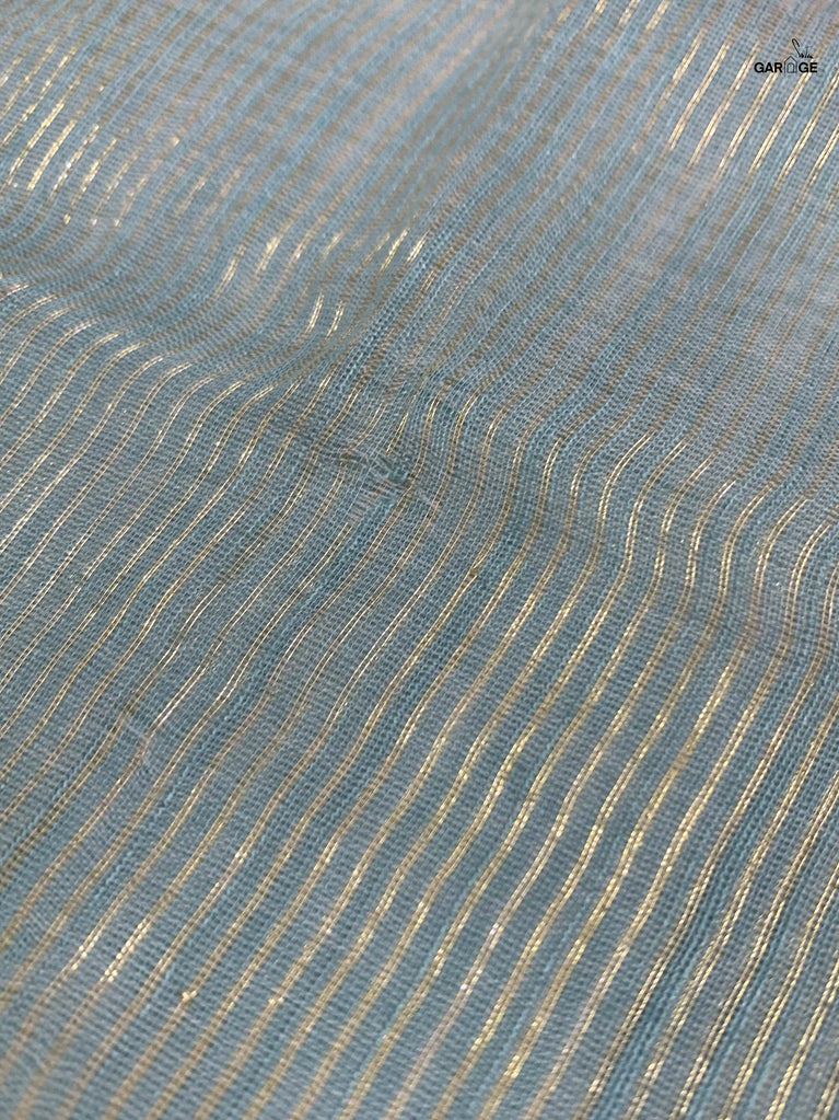 Imagine styling yourself in the mesmerizing Aasmani Mehfil Saree in light blue, crafted with a cotton slub fabric that’s lightweight yet rich. Perfect for celebrations, this festive saree features a red and gold border with intricate zari details and zari stripes throughout the saree.