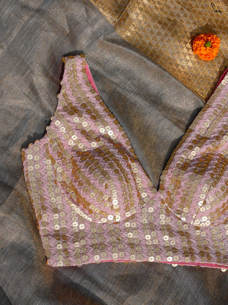 Soft as a secret and radiant as dawn - Asli Chaandi is pure poetry in pink. This sleeveless linen blouse gleams with intricate embroidery that catches the light beautifully, lending it a festive glow. The V neckline adds modern finesse, while the delicate hue keeps things romantic and versatile. Perfect for everything from haldi mornings to evening receptions, this blouse is the real deal - graceful, effortless, and unmistakably you.