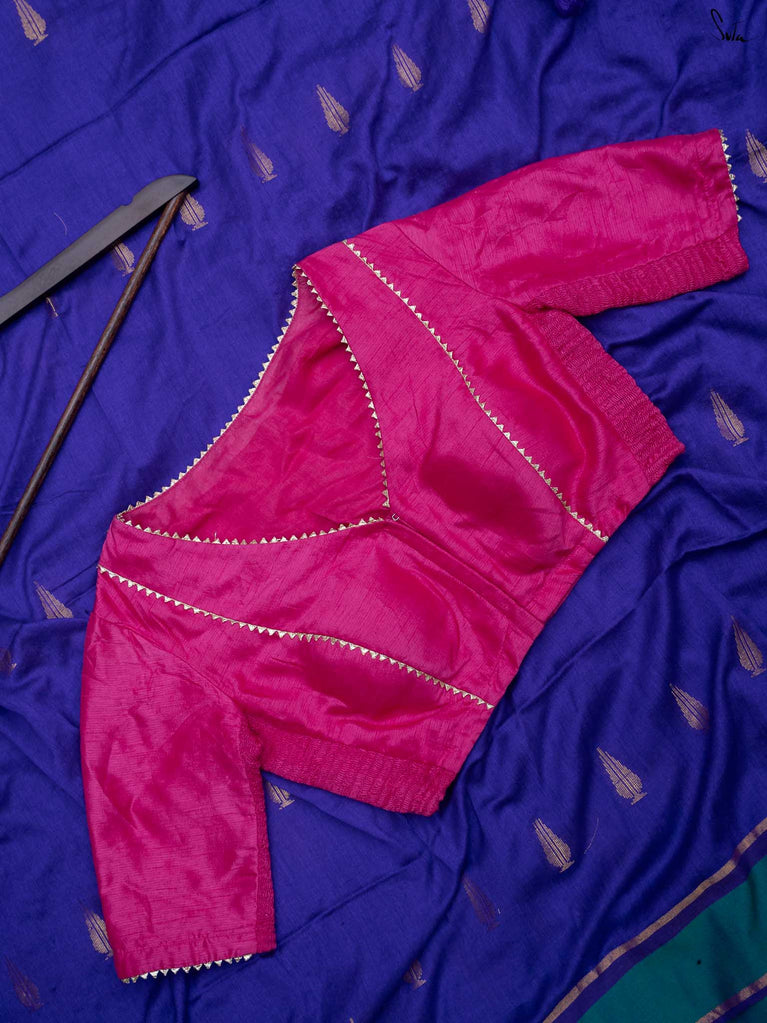 Brishti is one of our most skilled weavers. So many songs have been sung about rain, and we couldn’t think of a better way to honor her magic than in this blouse she made. This pink viscose-blend piece elevates any saree with its flattering V-neck and elbow-length sleeves. Padded and fitted with side elastic, it shapes beautifully while keeping you comfortable.