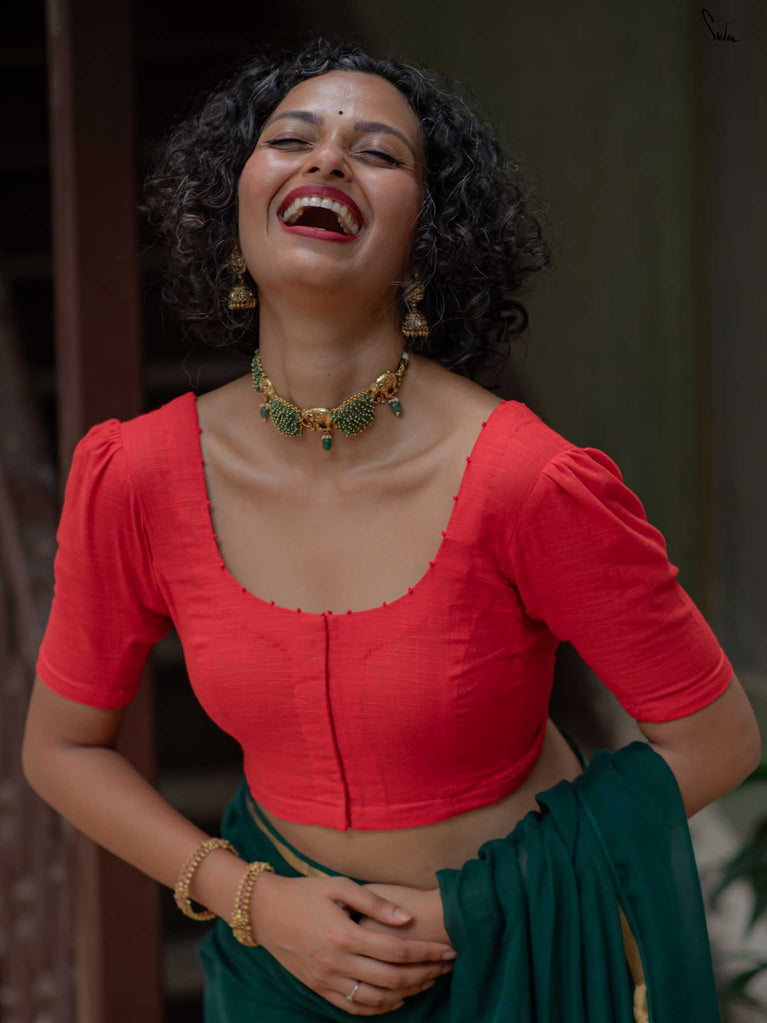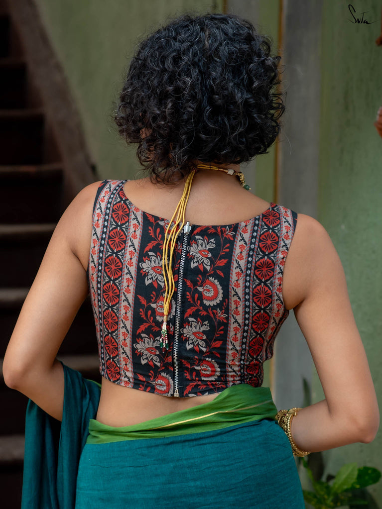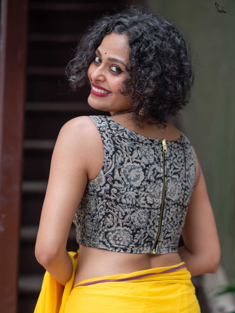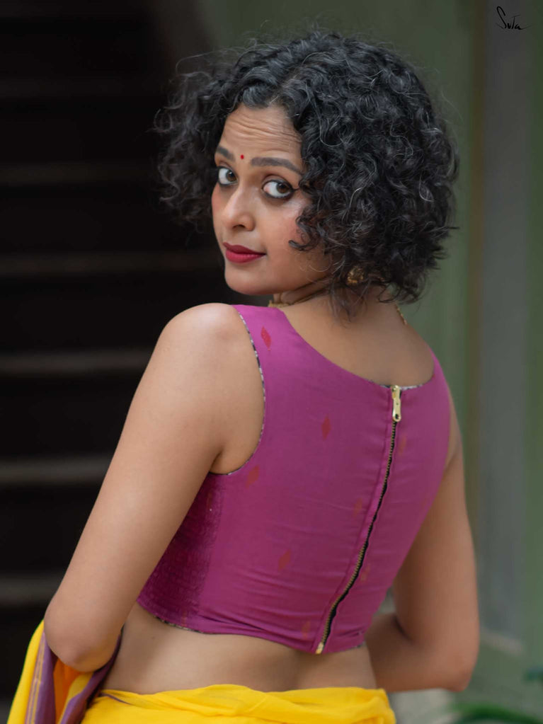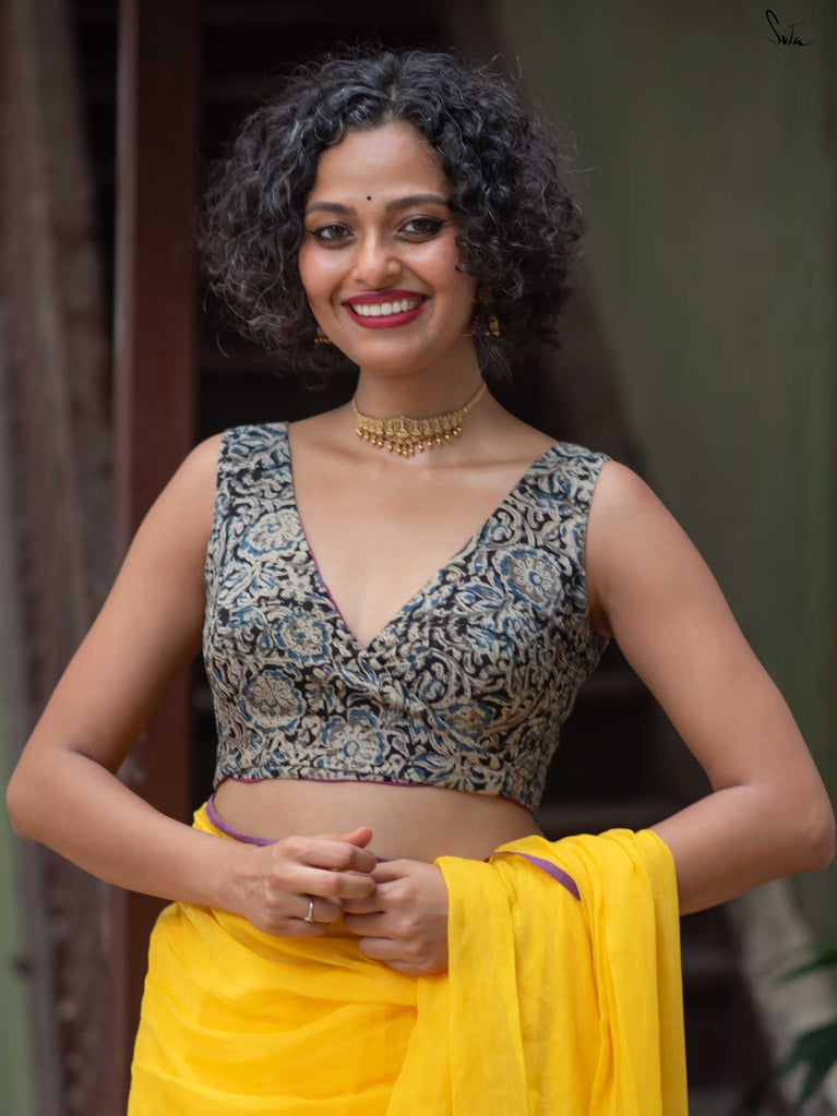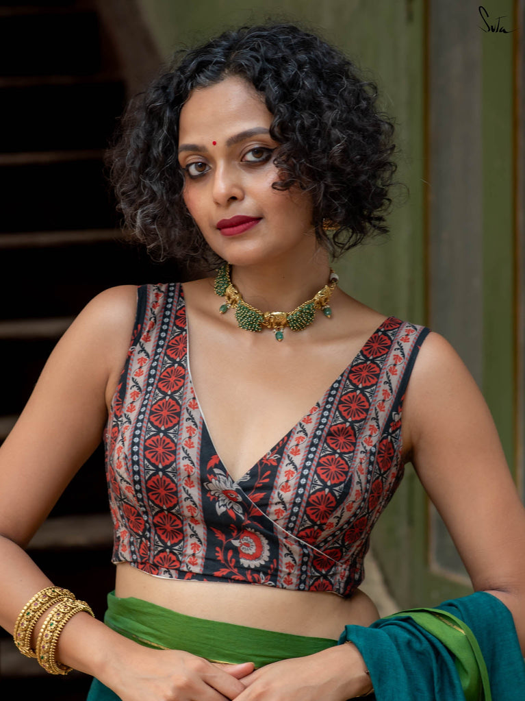 With a punchy black and pink combo, Alat Palat Jamun crafted for your every mood, from boldness to laziness. Sleeveless and elastic-fitted, it features a flattering V-neck front ideal for summer sarees and power-drape moments.