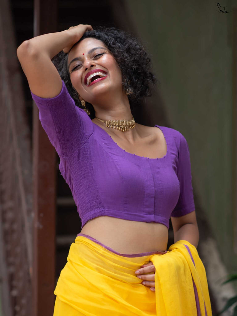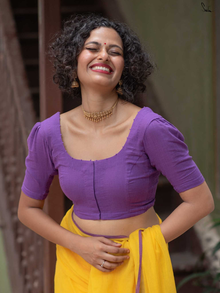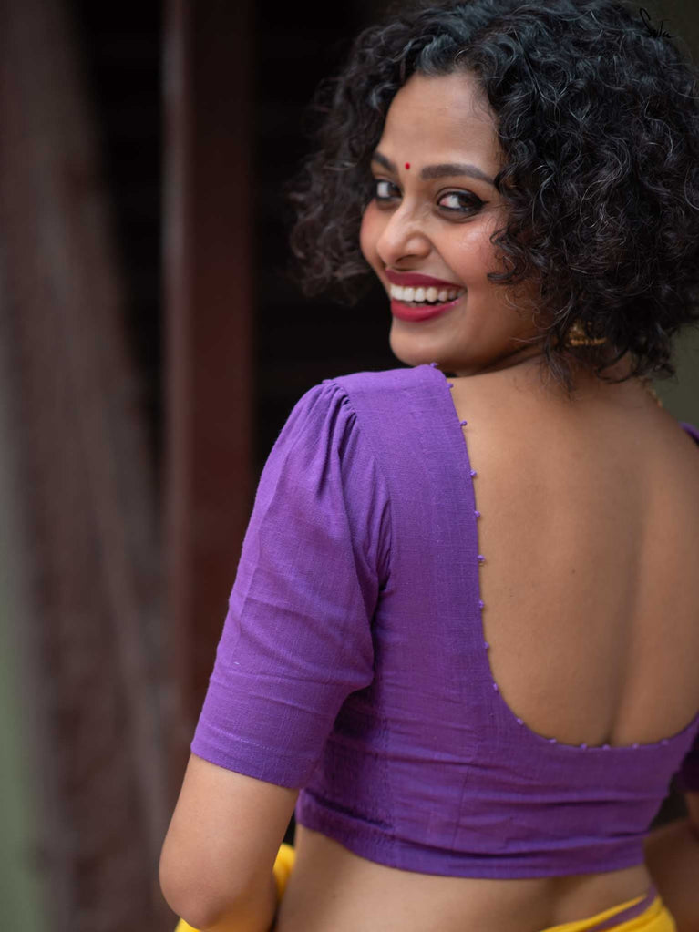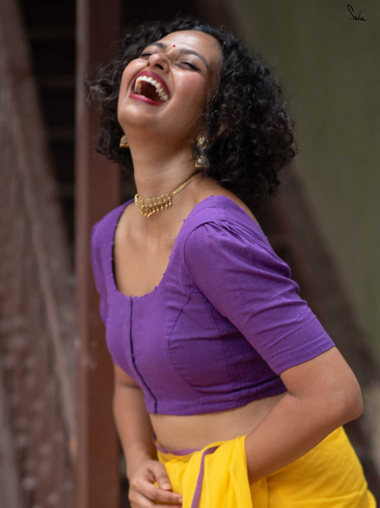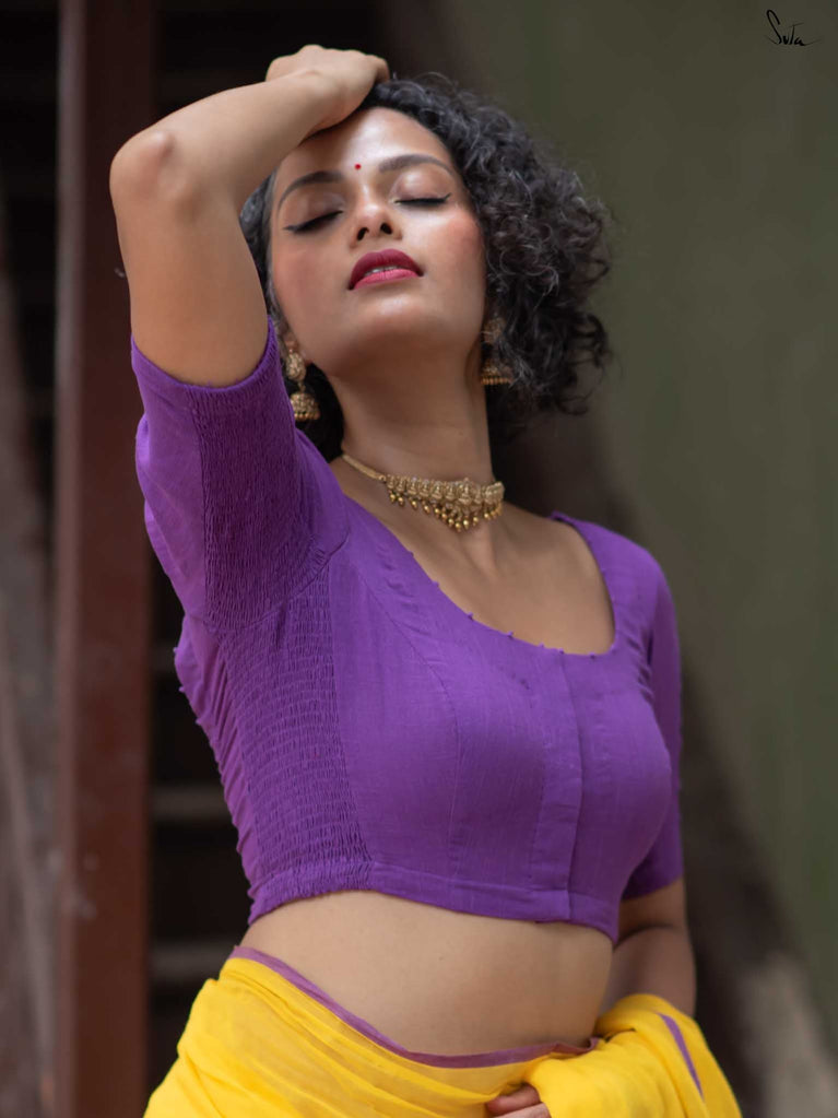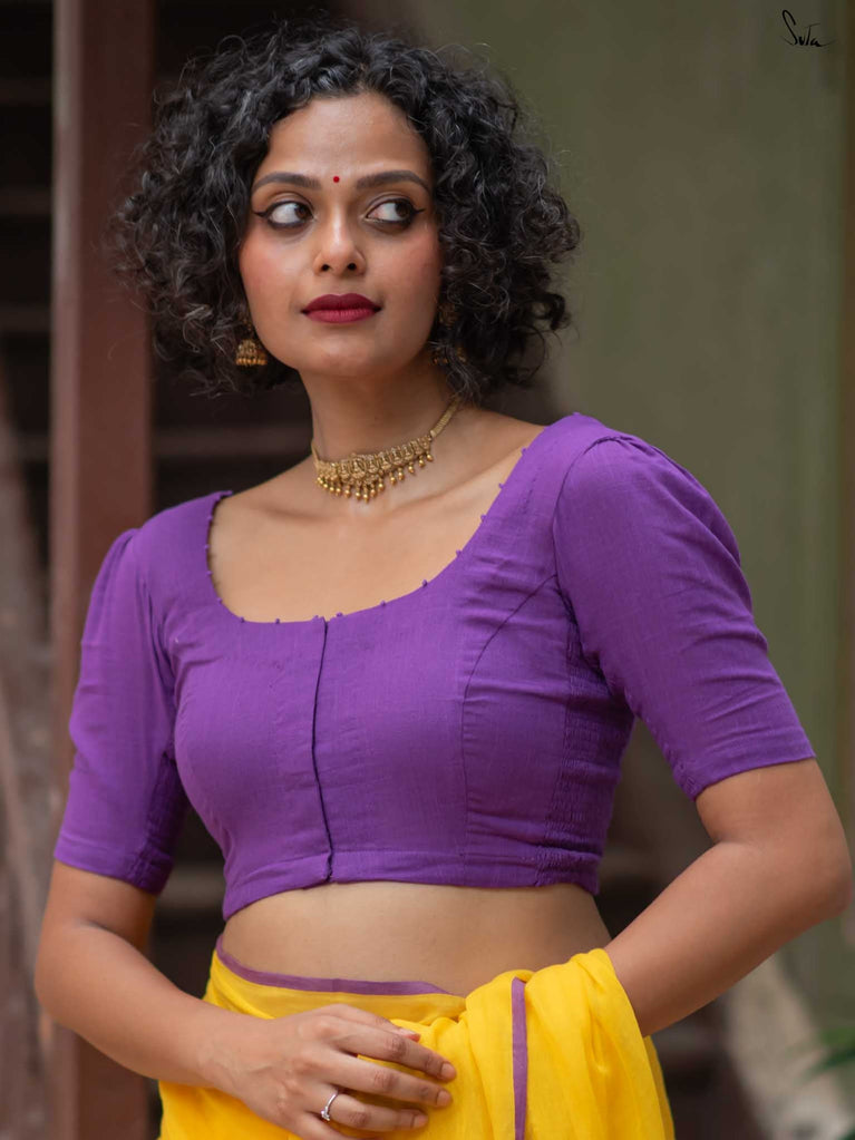Crafted in a purple cotton fabric, Dipped in Ink blends comfort and style. With an elastic fit and front hook closure, it’s designed for ease and movement. The U-neck front and back lend it a beautiful, comfortable and stylish design. Featuring half sleeves for All-Day Comfort.