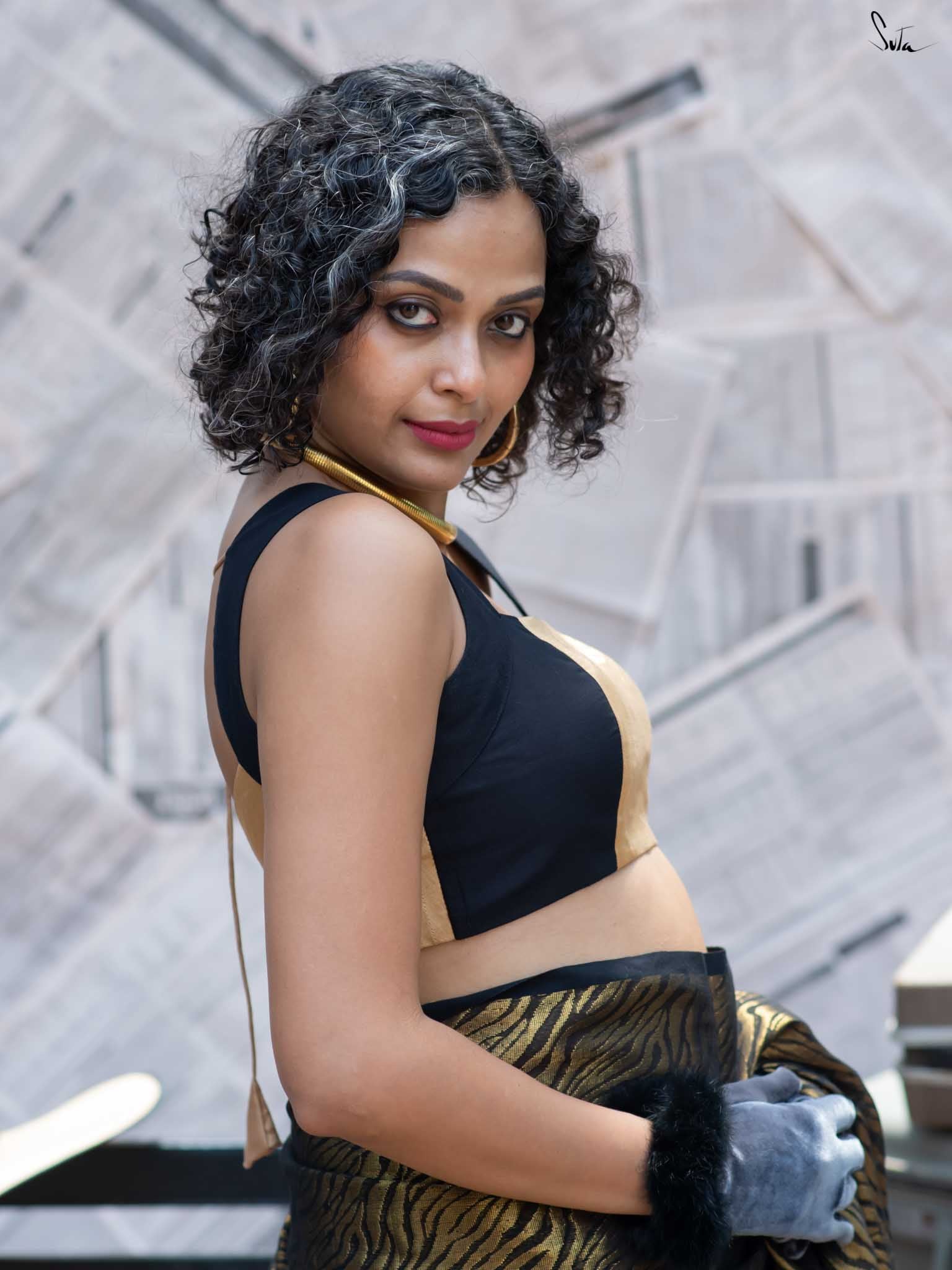 Gold meets black, bold and unforgettable. Sleeveless, padded blouse with an uber stylish square neckline. Back hook closure with tie-up adds the perfect finishing touch.