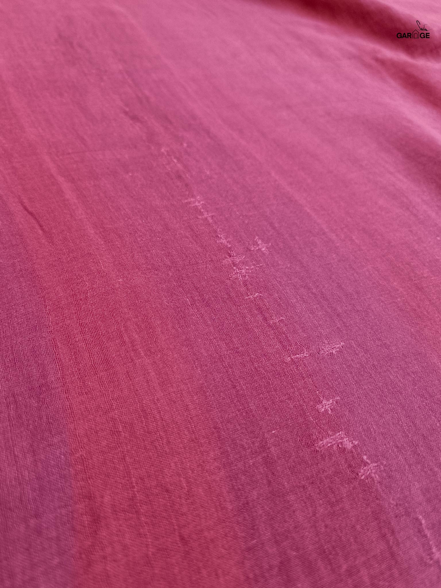 Jamdani is an incredibly intricate weaving technique. Each motif is inlaid into the fabric using a supplementary weft technique. Here, extra weft threads, often denser than the base, are added using individual spools while weaving. This technique makes the motifs appear as though they are floating on the fluid cotton fabric. Jamdani weaving is highly time intensive and it takes anywhere between several weeks to months to weave one saree. It is indeed a labour of love.