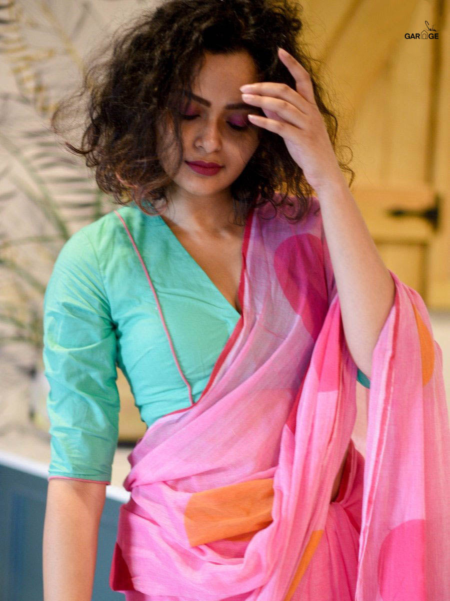 Su, the model is wearing size S blouse and the saree is Flying to the Moon Polka.