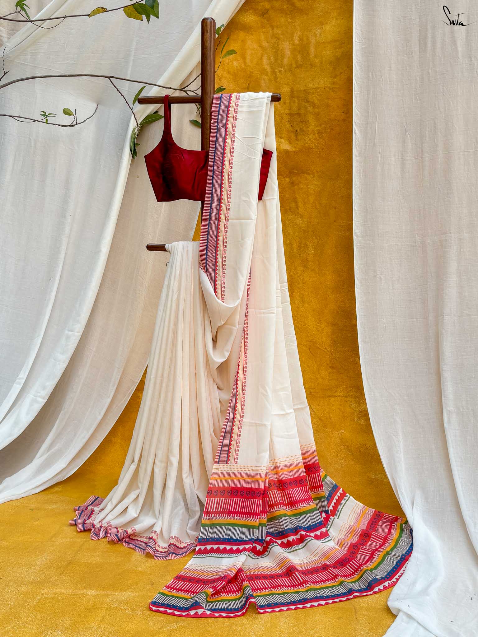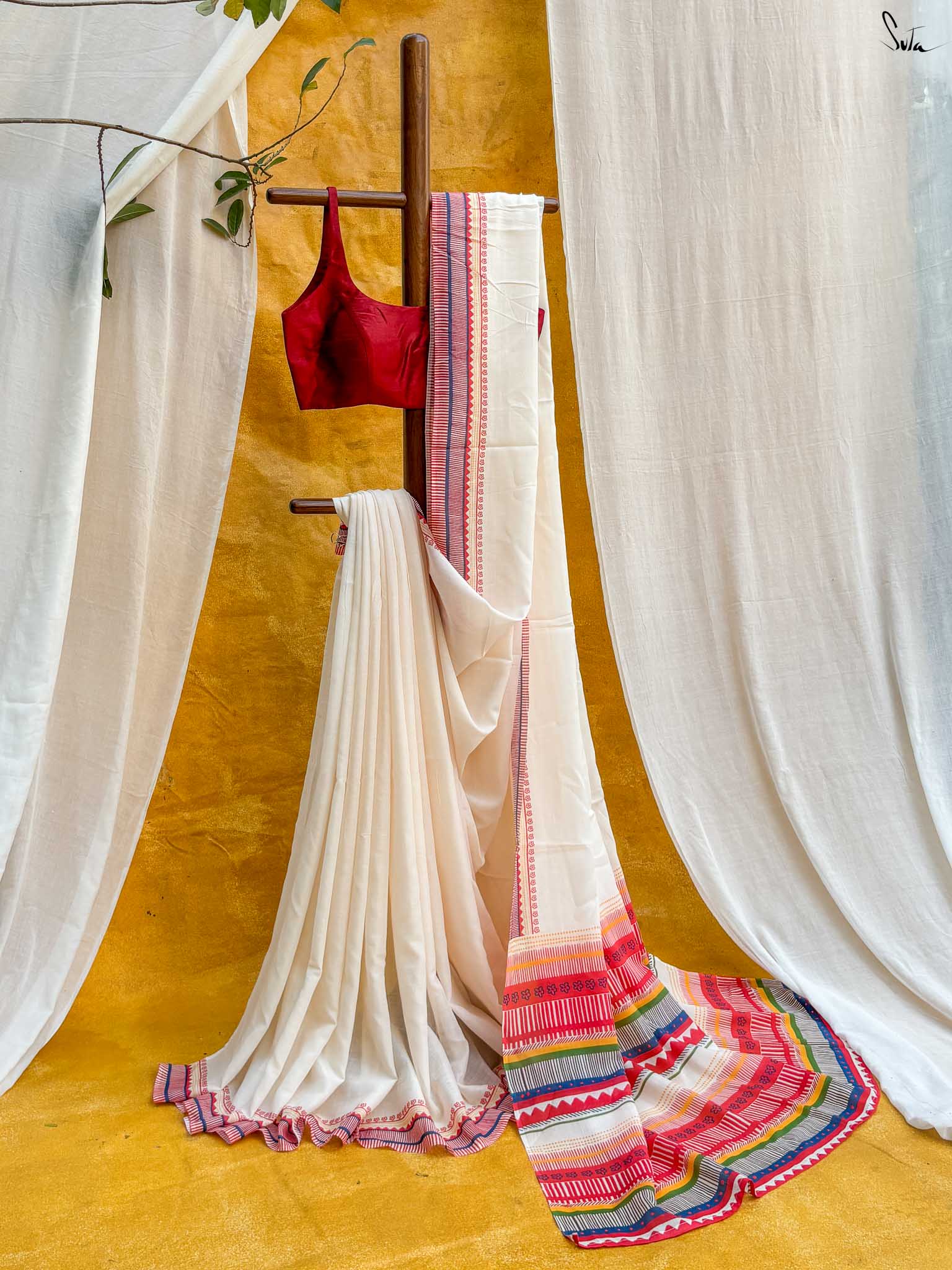Note: Our mul sarees are slightly transparent, it’s the nature of the fabric and part of its soft, airy charm.