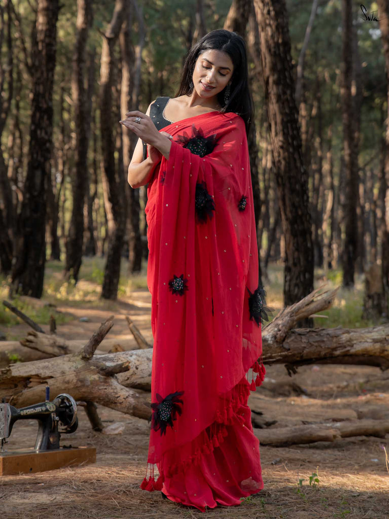 NOTE : Fall and edging is not required for a ruffle saree. You can drape this saree like a regular saree as it is not pre stitched.
