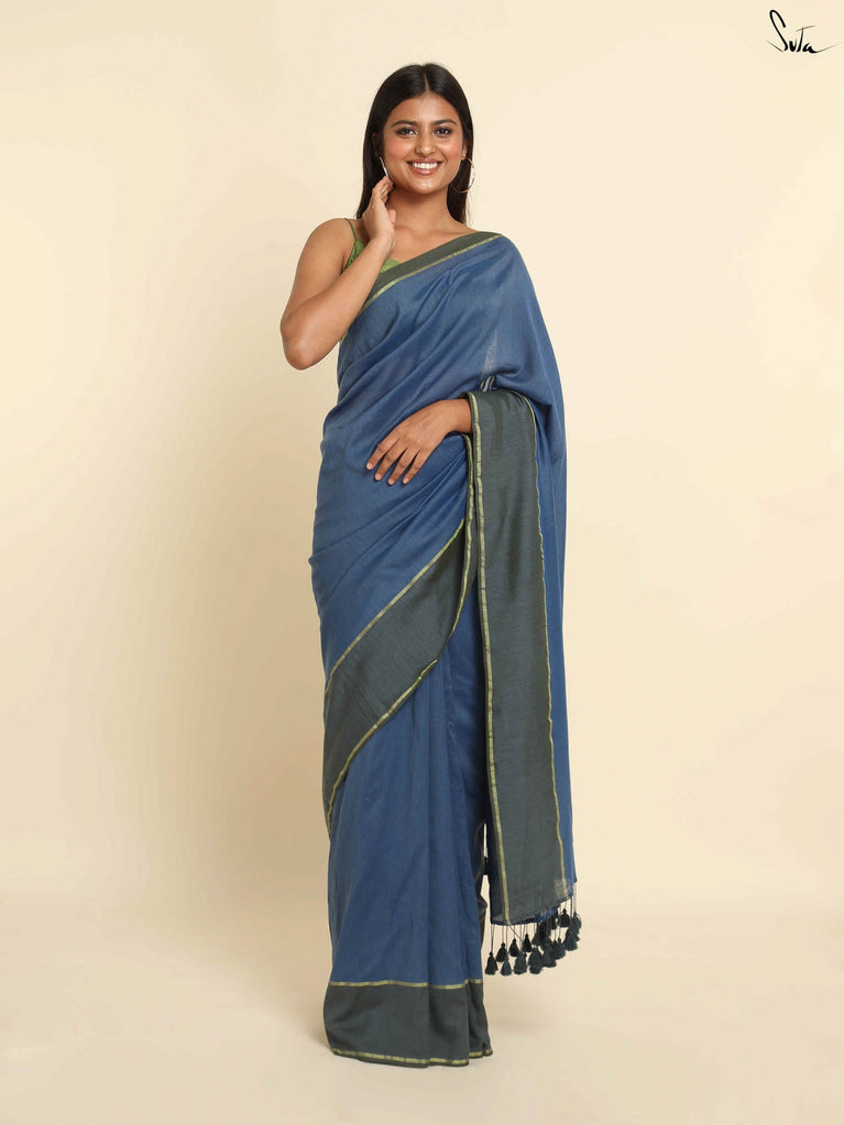 Suta Blue Solid Zari Saree