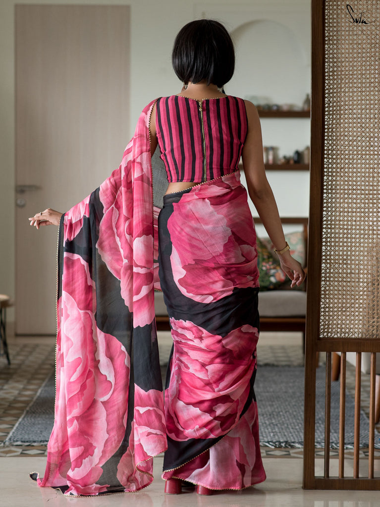 It’s a drape made for evenings that call for quiet glamour - rich, warm, and beautifully blooming.