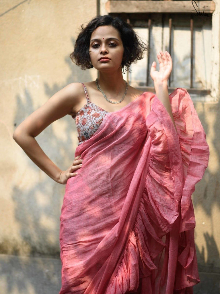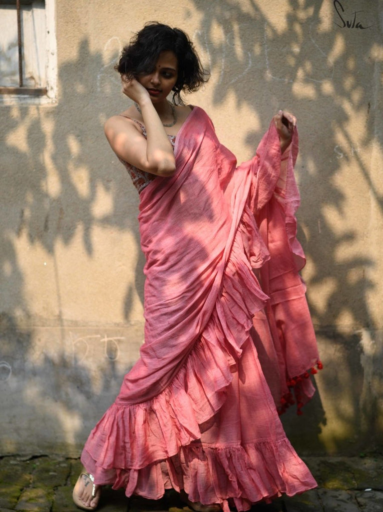 Ruffles are the perfect addition to the incredibly soft and light made-in-heaven Mul fabric. These pretty ruffle sarees are an amazing addition to your wardrobe because they offer the perfect mix of elegance and spunk.