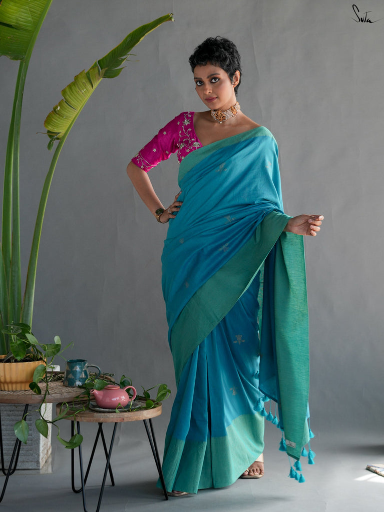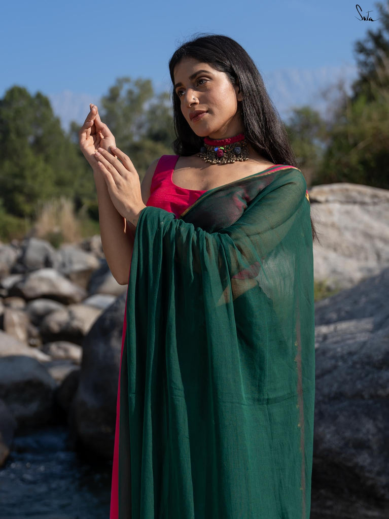 Note: Our mul sarees are slightly transparent, it’s the nature of the fabric and part of its soft, airy charm.