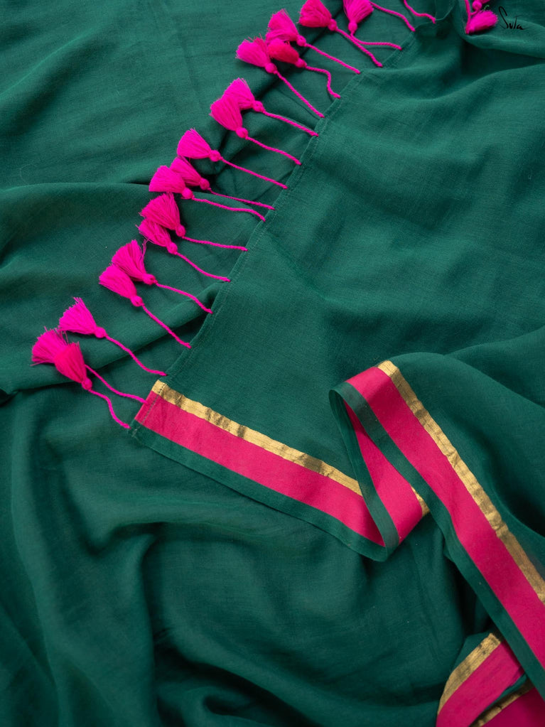 Earthy and comfortable, Dal Chini blends deep brown hues with a subtle zari border for a refined look. The beige jhalar tassels add softness to the rich woven mul cotton drape. A versatile choice for formal day events or understated festive occasions.