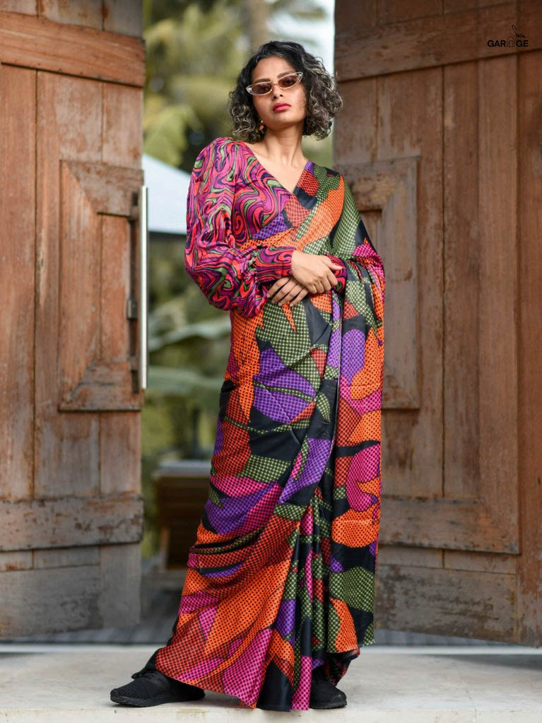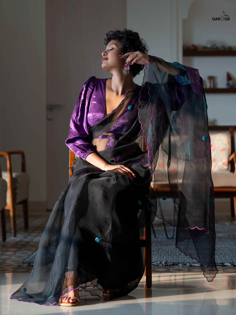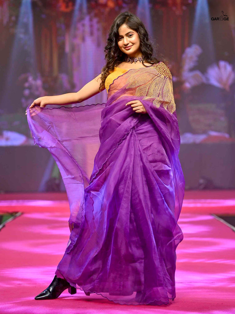 Light as air and translucent like a rainbow, organza silk is a fabric that exudes delicate grandeur. Woven with twisted silk yarn on the warp as well as the weft, this fabric is hailed for its slight transparency and its slightly stiff and yet fluid texture. The slight sheen adds to its charisma, making it the perfect saree to drape for both festive and formal occasions.
