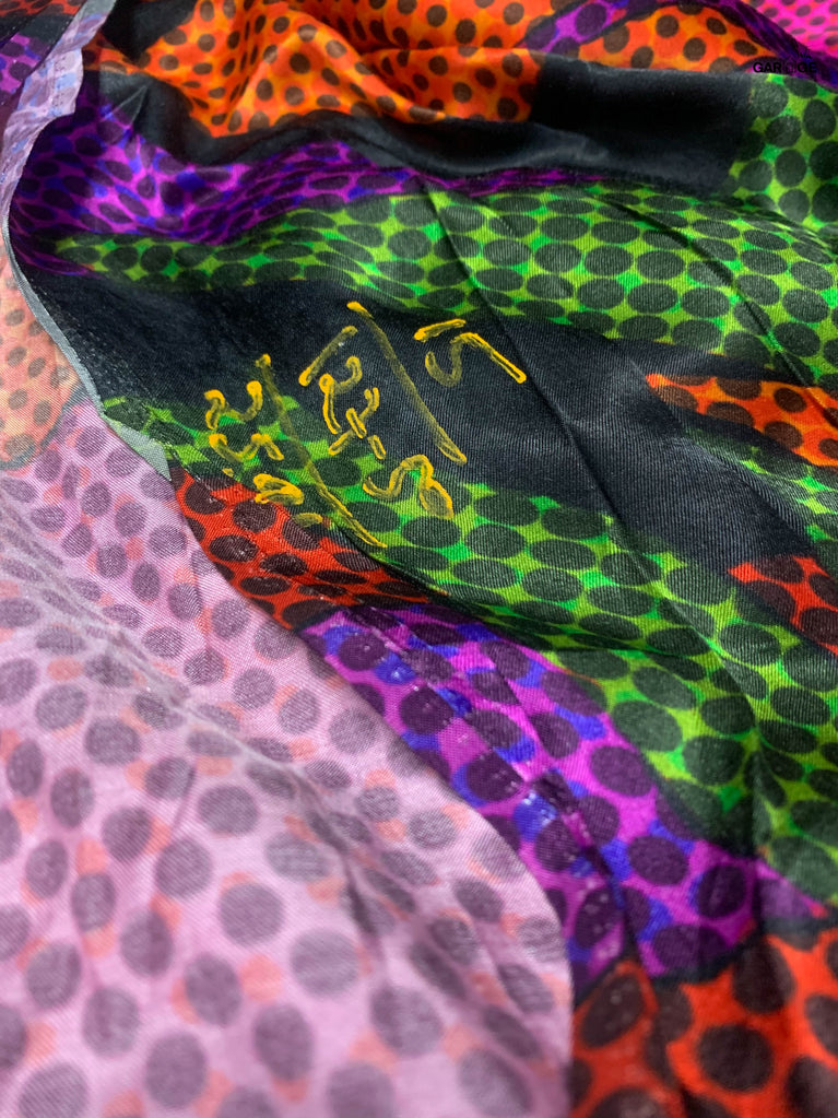 This saree is a canvas of joy, painted with a thousand colors of Holi. The white Mul Modal saree flows like a swirl of vibrant gulaal, carrying with it the spirit of celebration. Each fold is a splash of freedom hand-stitched in rich 3D multicolor crochet flowers and hand-embroidered sequin. The detailed scallop finish all-over twirls with the wind, while jhalar tassels add a hint of whimsy like the dance of colors in the air. Complement with a gathered pallu, it spreads a perfect festive joy and is bold enough to carry the spirit of every Holi reveler.