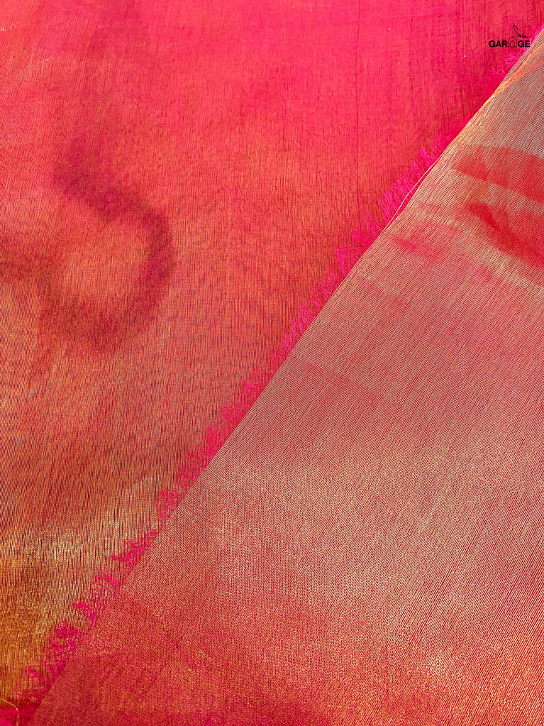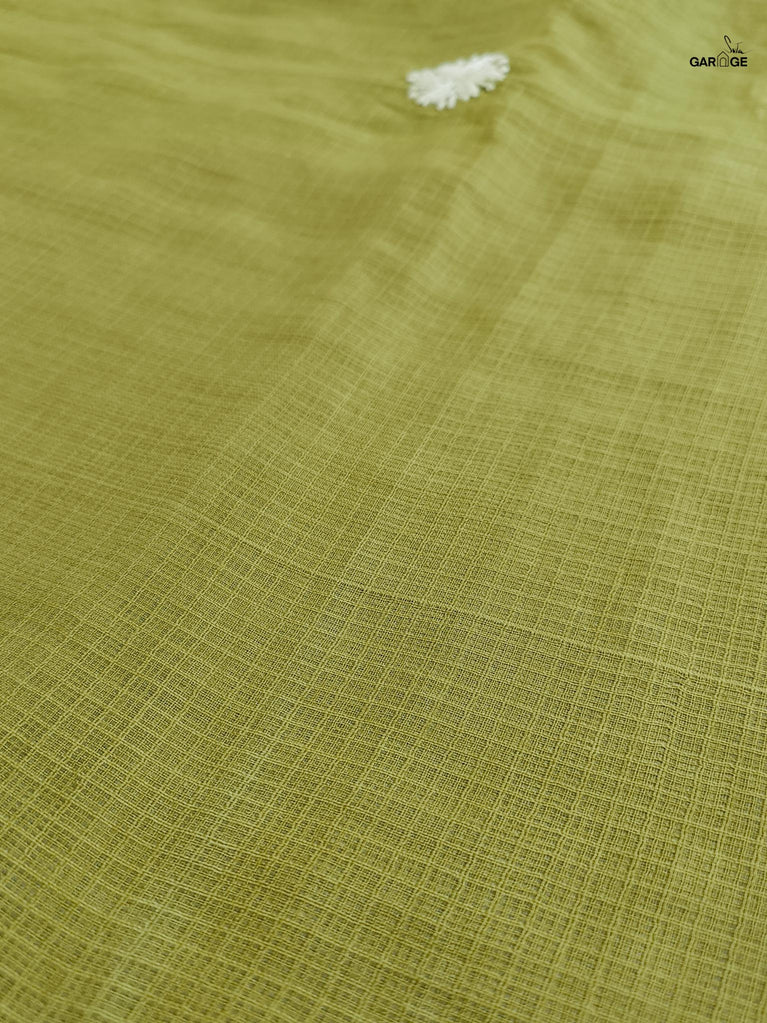 Vibrant, fearless, and full of joy - Swarangi is a celebration in motion. Woven in striking neon green cotton-silk, it’s brought to life with a soft dull gold floral jaal that adds just the right touch of elegance. Light, playful, and unapologetically bright - this saree is made to turn ordinary days into festive memories.
