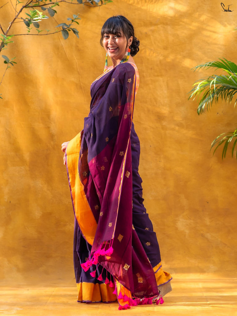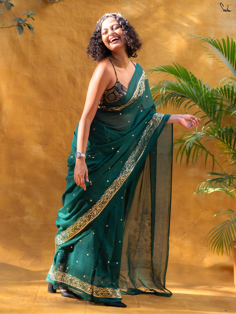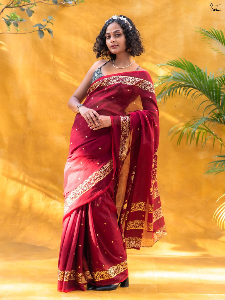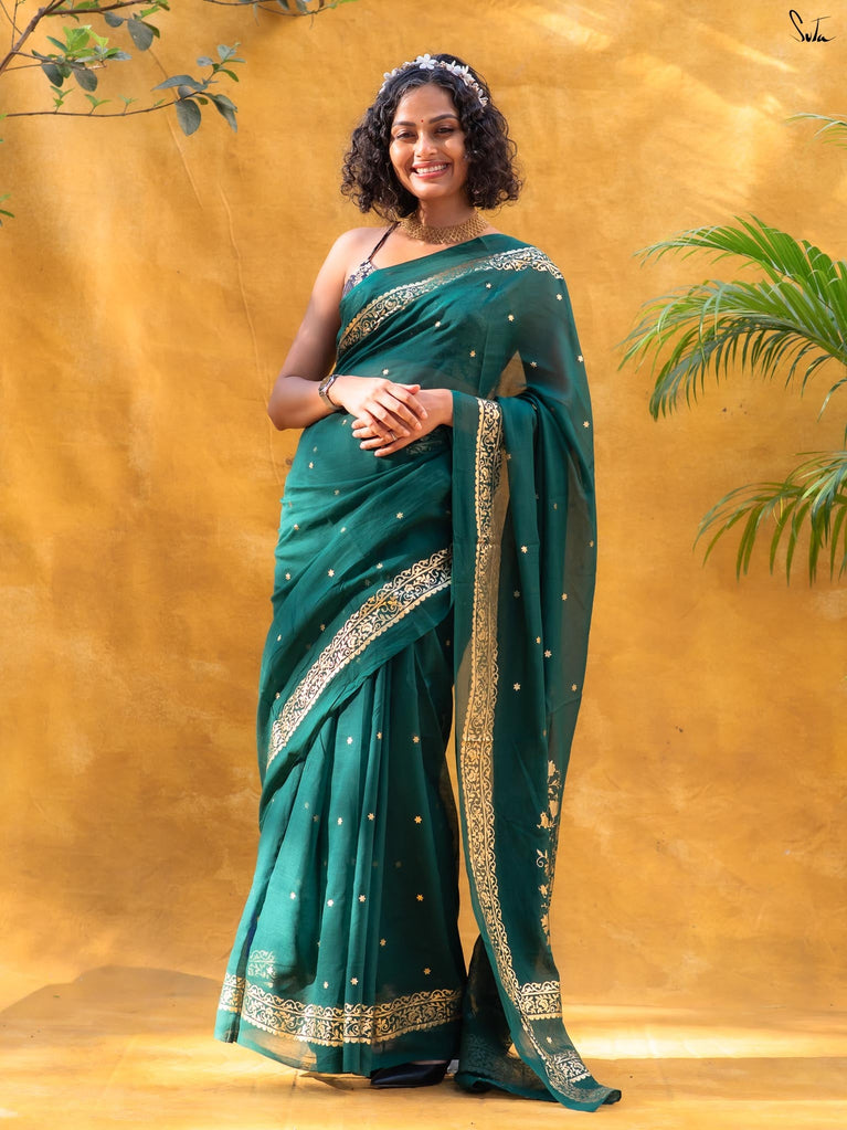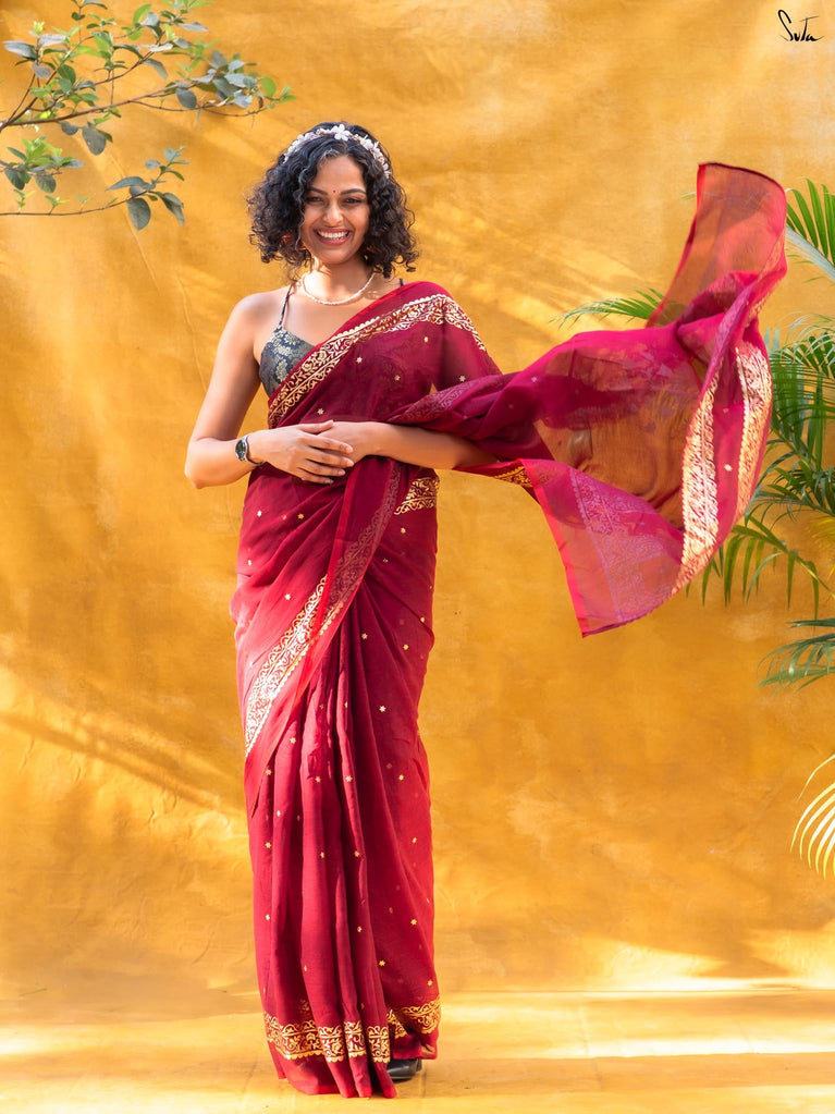 Note: Our mul sarees are slightly transparent, it’s the nature of the fabric and part of its soft, airy charm.