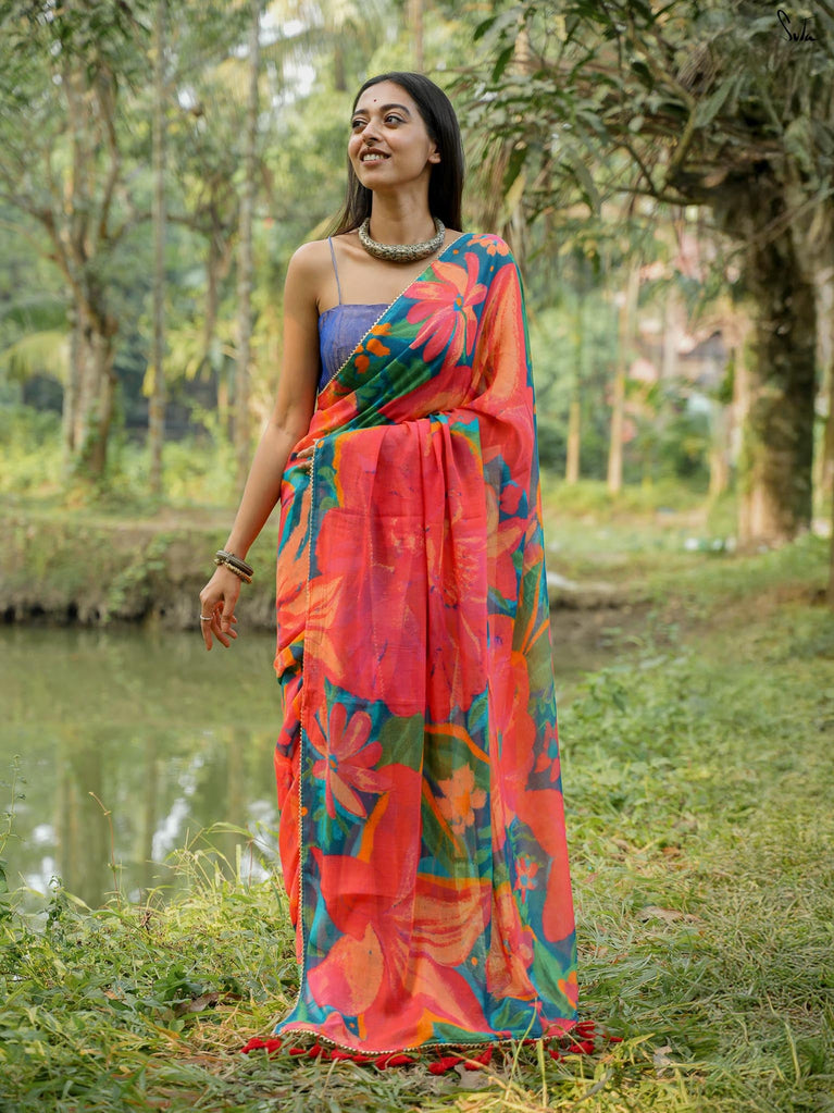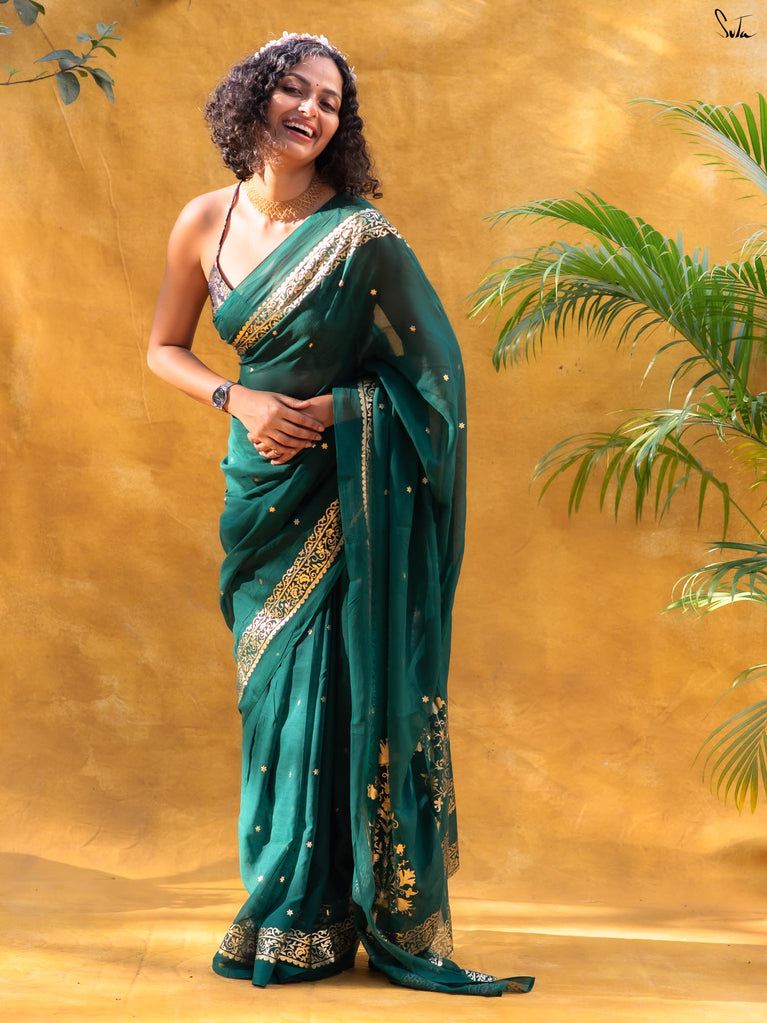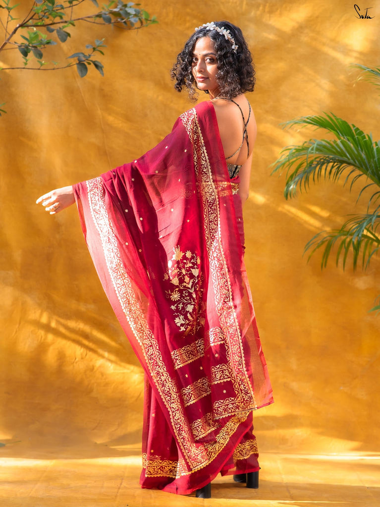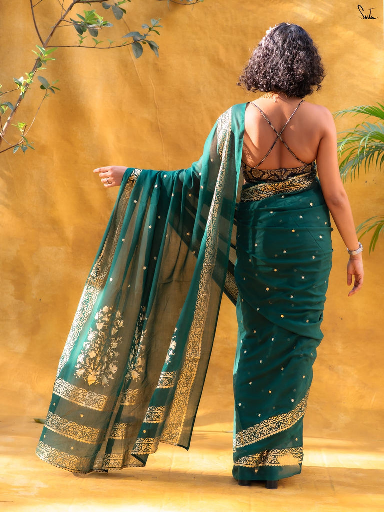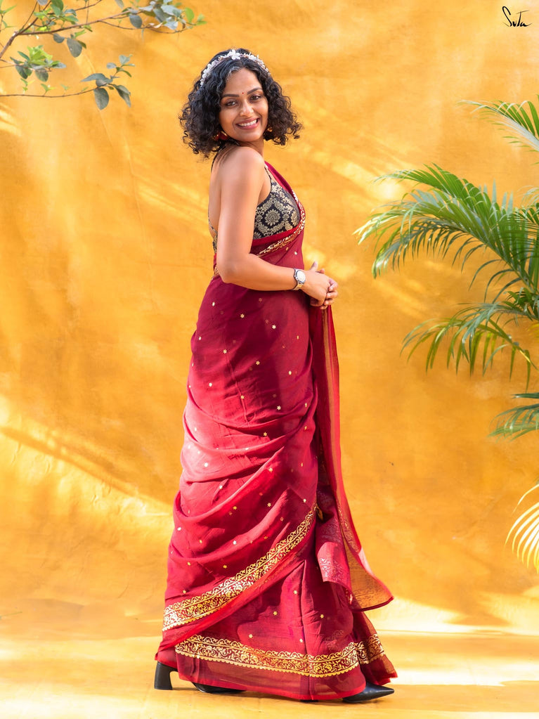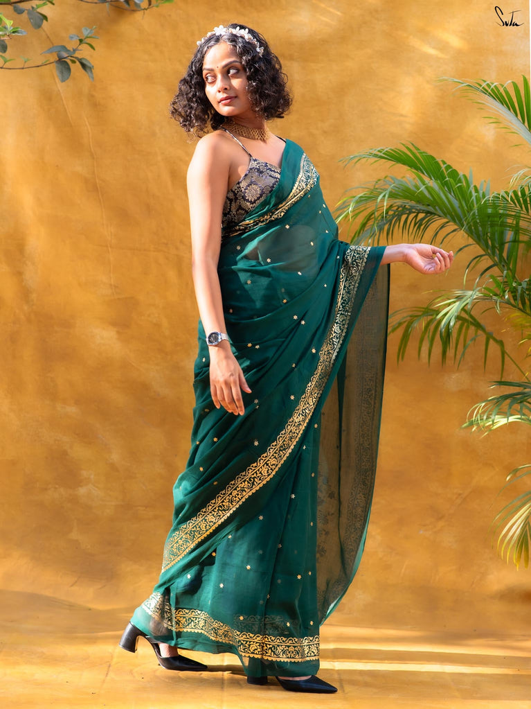Note: Our mul sarees are slightly transparent, it’s the nature of the fabric and part of its soft, airy charm.
