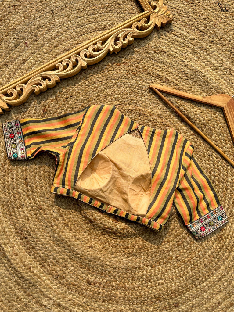 Every star needs the right canvas to shine, just like Amini needs you. This sleeveless gold blouse from Suta’s Taara collection is crafted from rich cotton silk chanderi blending excitement and modern style. The back hook-hole adds a contemporary edge, while the silver piping along the neck, armholes, and hem subtly complements your saree. Let your inner brilliance shine through with this Amini Blouse.