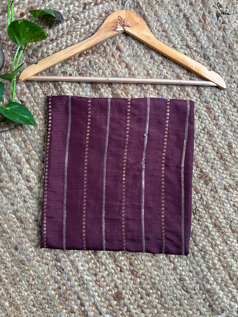 Bring sparkle to your festive and wedding looks with Frozen Twist, a full-sleeve blouse in rich purple foil organza. Sheer sleeves paired with a flattering U-neckline and delicate lace detailing at the cuffs make this blouse perfect for twirling through celebrations.