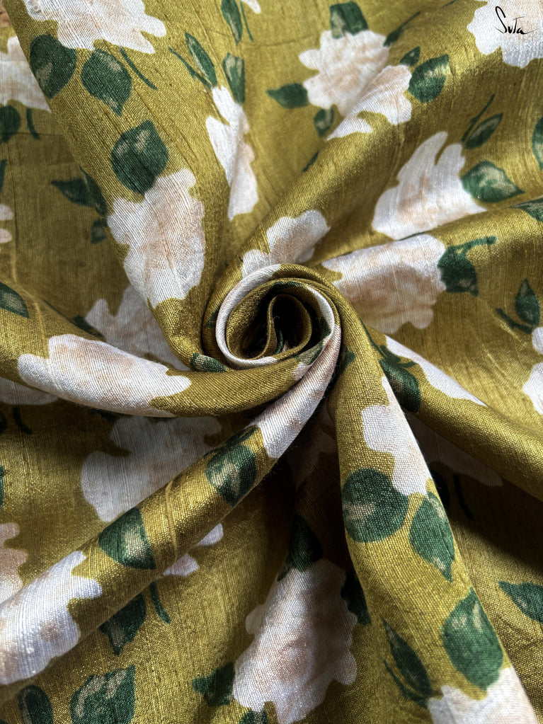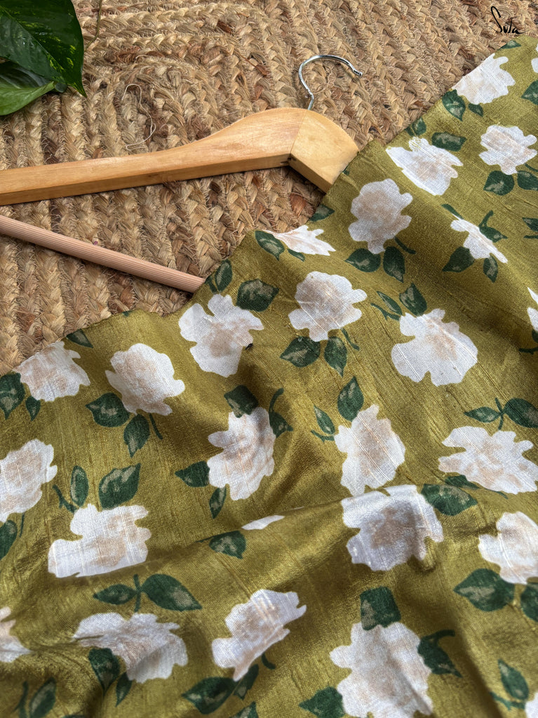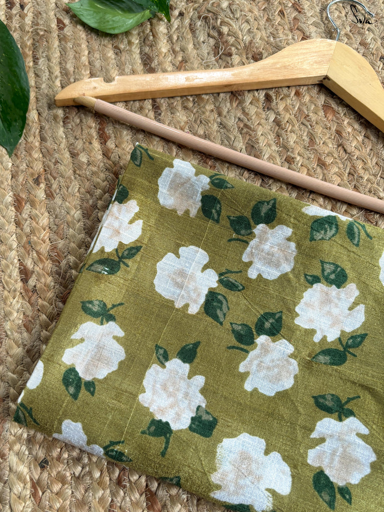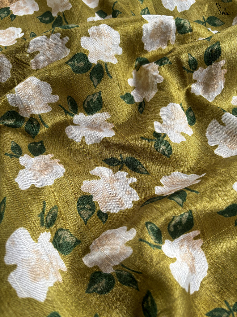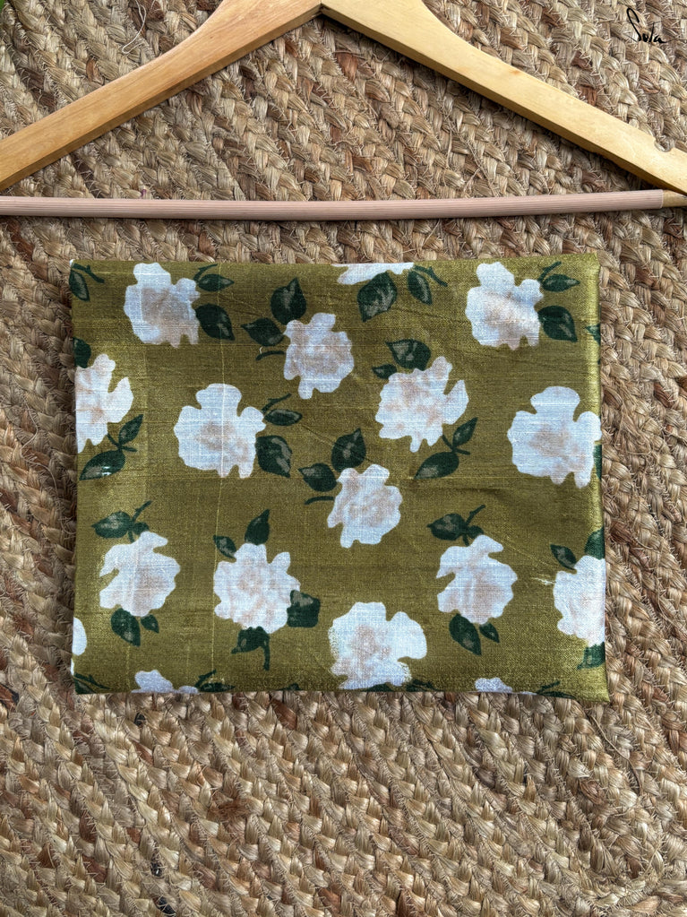 Elevate your festive and wedding look with Caramel Twist, an elegant half-sleeve blouse in rich brown foil organza. Adorned with delicate golden floral foil prints and intricate lace detailing, it exudes understated glamour with every twirl.