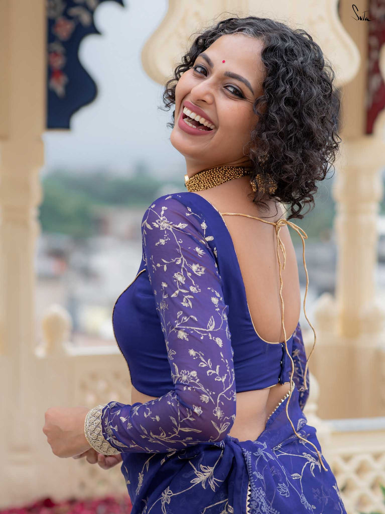 Designed with sheer sleeves, light padding, and a back hook-and-knot closure, this blouse pairs beautifully with matching sarees, adding twirl-worthy glamour and elegant charm to every occasion.
