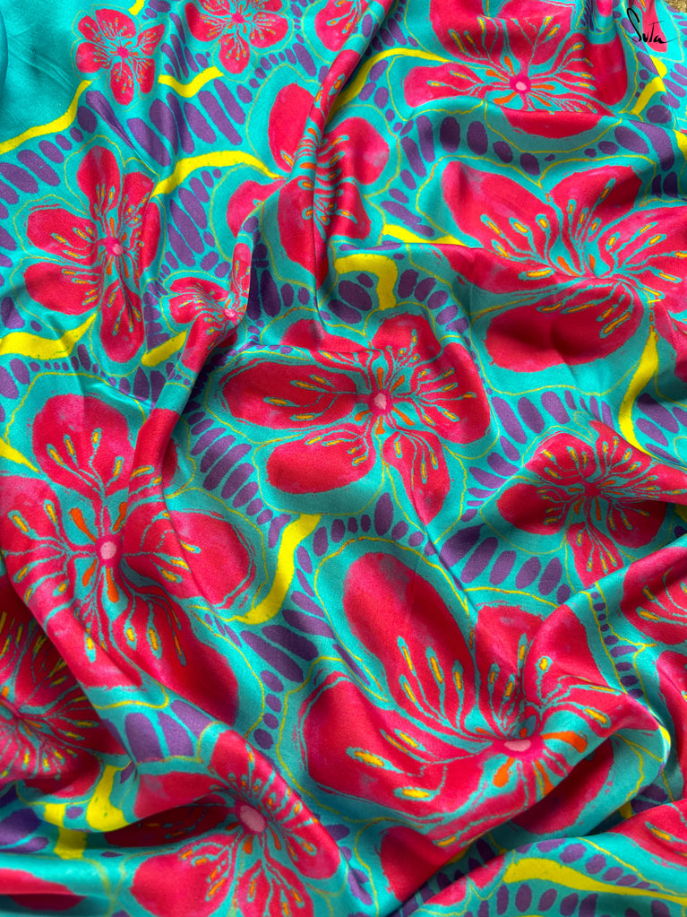 Silk is a natural fibre produced by the cocoons of silkworms. The shimmering appearance of silk is attributed to the prism-like structure of its fibres. While being smooth and soft, pure silk is also extremely durable and not slippery. Pure silk has been used in this rich red saree, to create a piece that is truly special and memorable.