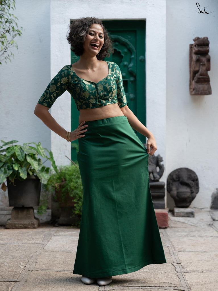 Indulge in the magical comfort of Emerald Gills, an underskirt crafted from breathable cotton lycra! The stretchable design ensures a full range of motion, creating a flawless silhouette that makes you feel confident and radiant. Wrapped in luxurious dark green, this underskirt is a masterclass in blending comfort and style.