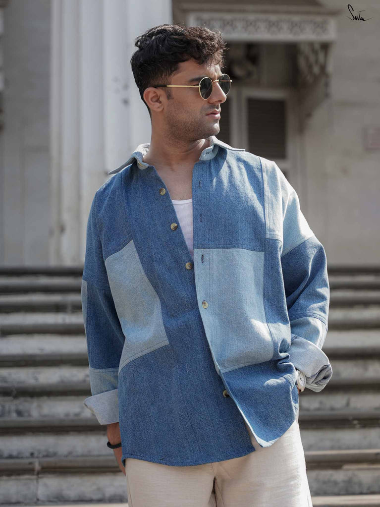Make a lasting impression with Denimyte, where the dynamic power of dynamite meets the timeless elegance of denim. This standout denim patchwork jacket, crafted from a sophisticated blend of light and dark washed denim, can effortlessly transform into a shirt for unparalleled versatility. With its bold craftsmanship and energetic spirit, Denimyte ensures you make a statement that radiates style and confidence.