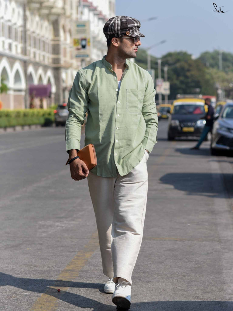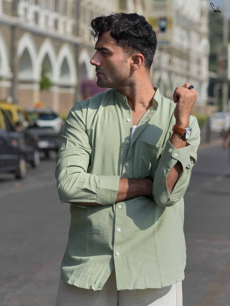 Discover your playful side with Faded Fern, a sage green shirt made from soft handloom cotton. This full-sleeve design features a quirky mandarin collar and a sleek front pocket, offering versatility for any occasion. Experience the effortless charm and unmatched comfort of Faded Fern.