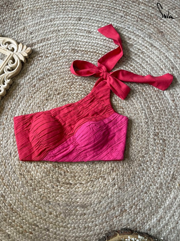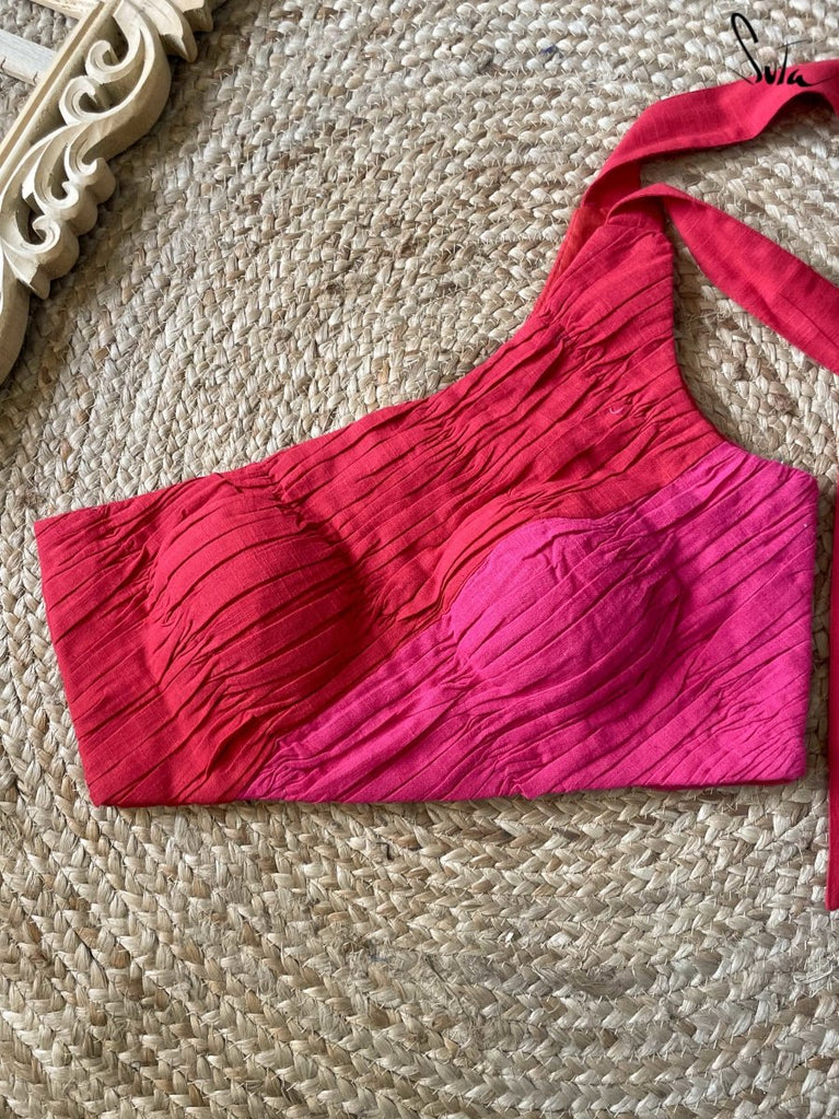 This gorgeous cotton red and pink blouse is the perfect accompaniment for those who never hesitate to seek their hearts’ true desires.