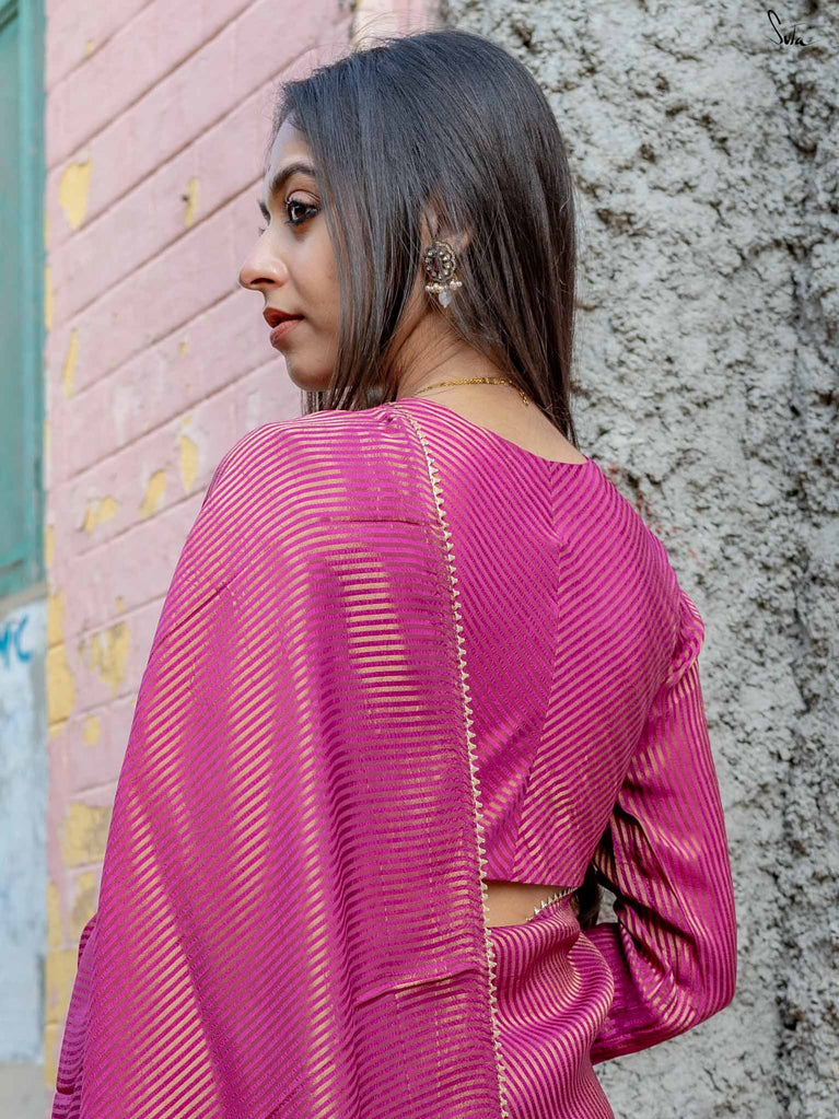 This saree has a running blouse piece woven into it.